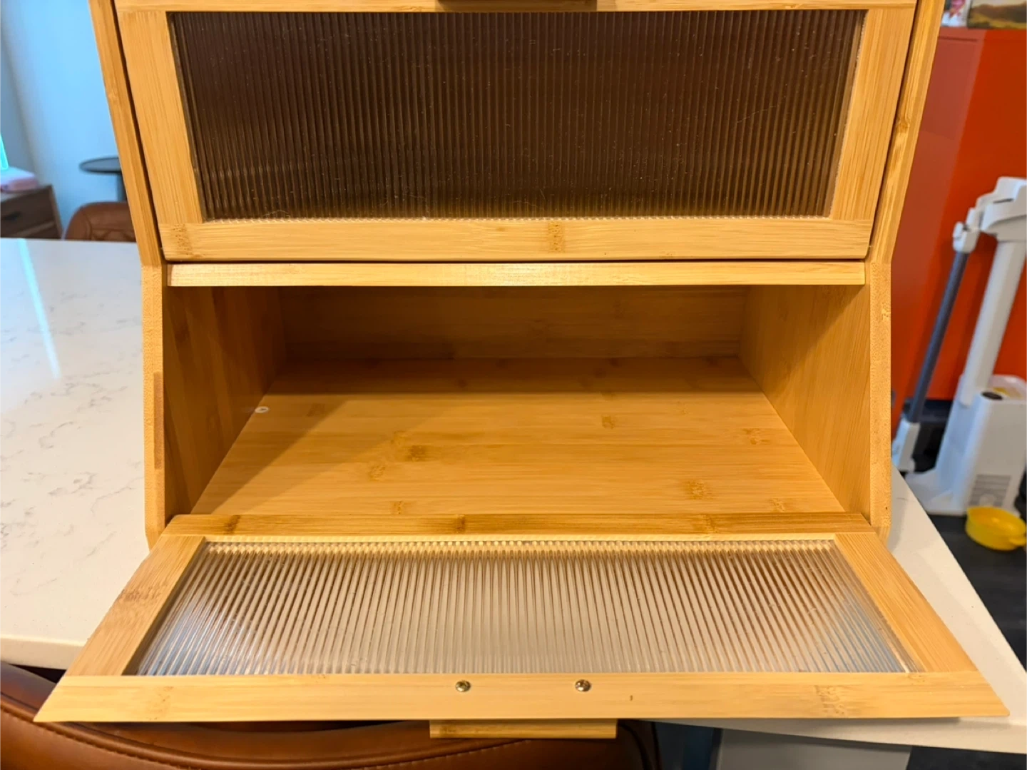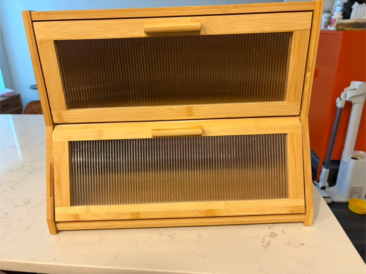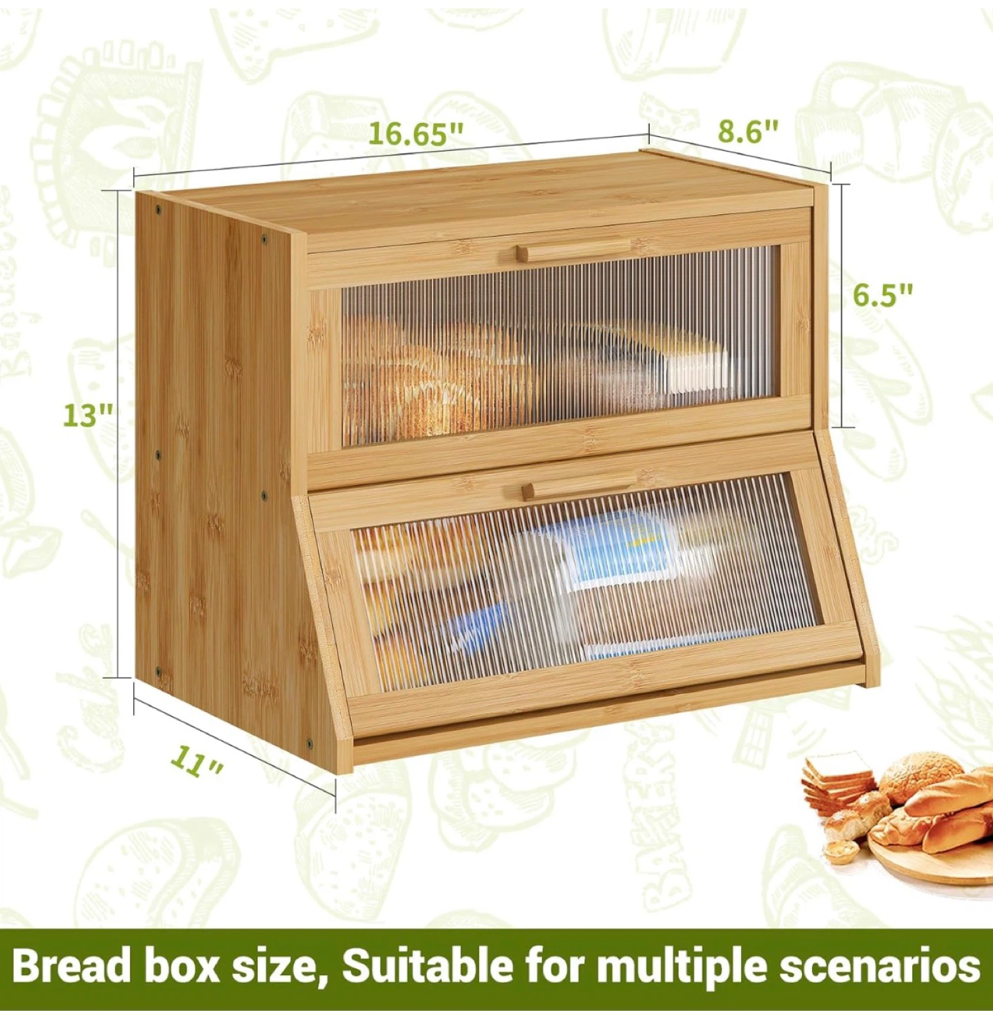 Two Tier Bamboo Bread Box with Clear Doors