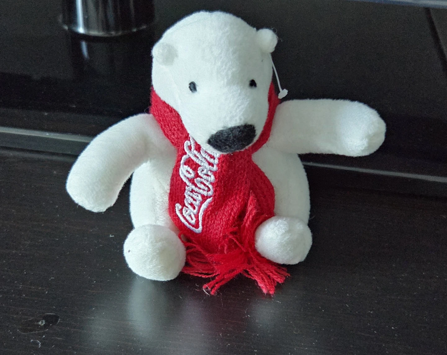 Selling a vintage cute Coca-Cola polar bear plush toy! It's in great condition and features a red Coca-Cola scarf. Perfect for collectors or as a cuddly friend.