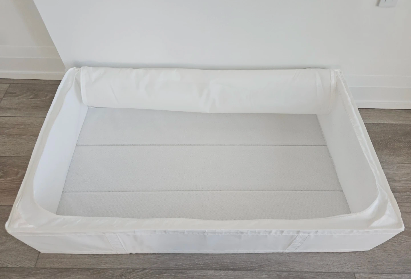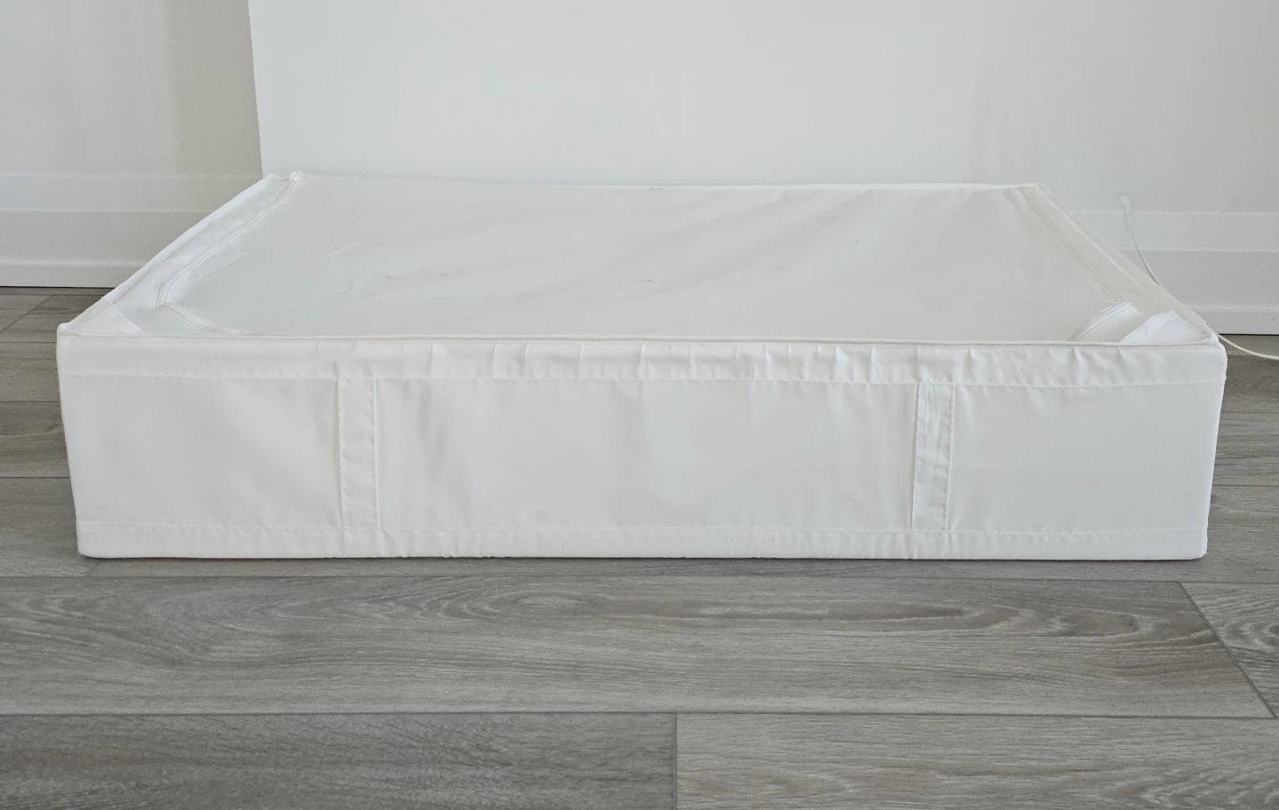 Selling a white IKEA VARDÖ underbed storage box. It's perfect for keeping extra linens, clothes, or toys neatly tucked away under the bed.