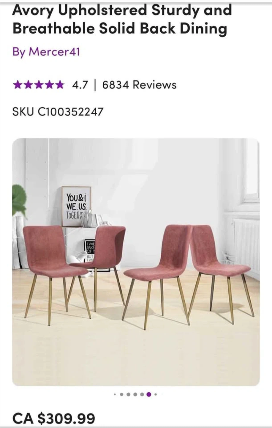 Selling 4 Mercer41 Avory upholstered dining chair, set of four chairs. It's sturdy and breathable solid back design. Retails for $309.99