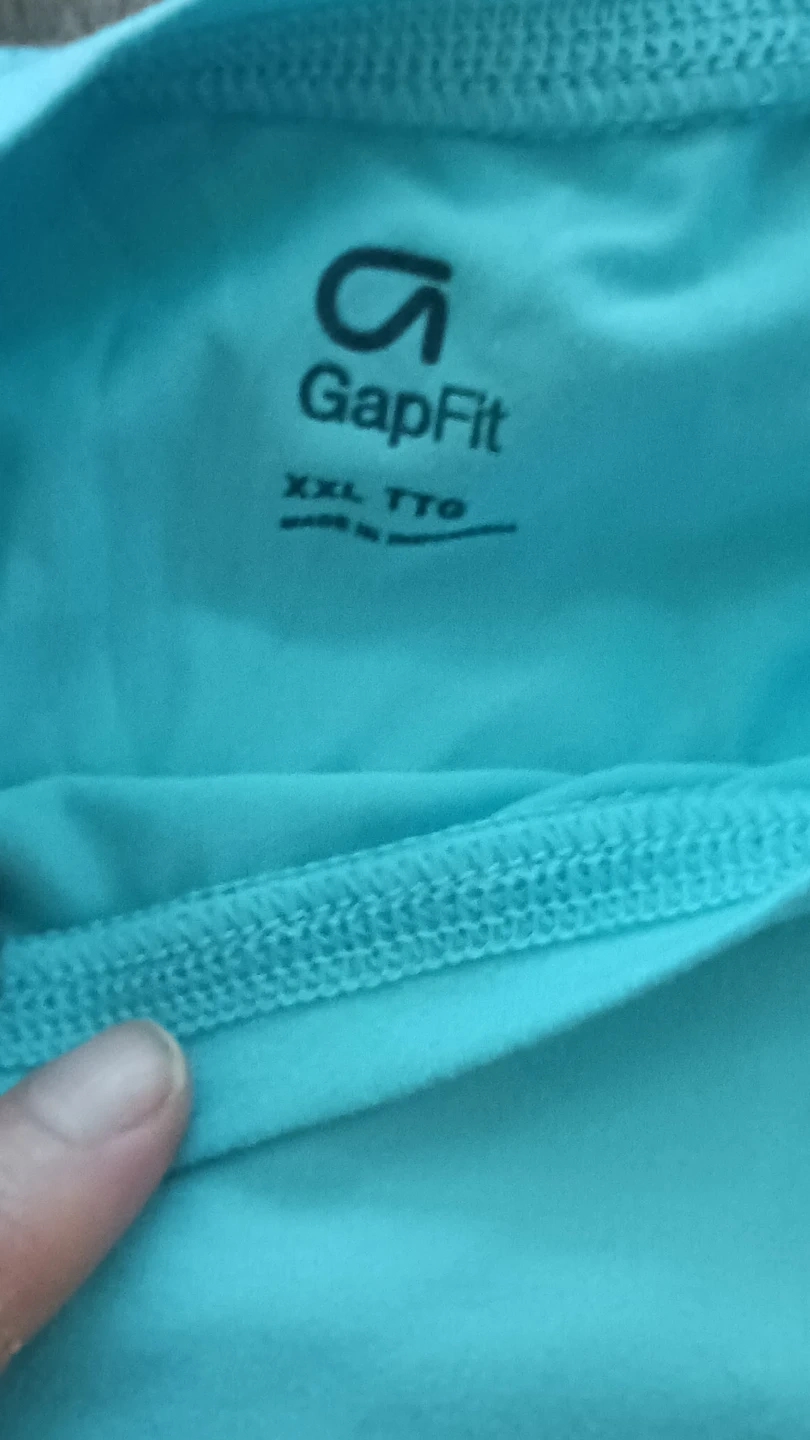 GapFit long sleeve shirt in size XXL. The shirt is a two-tone blue colour, great for workouts or casual wear! Wicks sweat away quickly making your child comfortable, or can be used as sun protection during swimming!