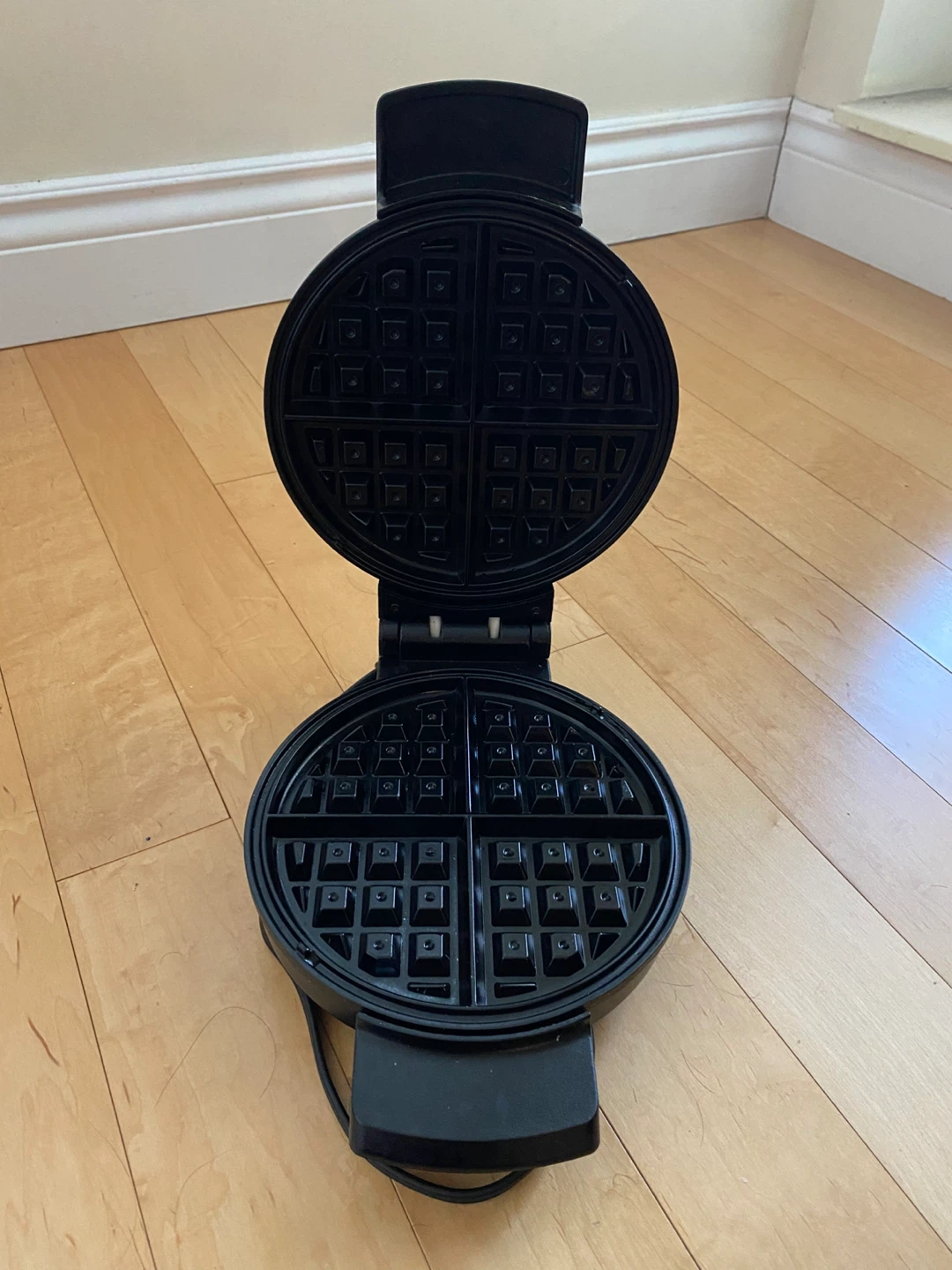 I'm selling a Black+Decker Belgian Waffle Maker! It has extra deep grids for thick and fluffy waffles. The nonstick plates make for fast and simple cleanup. It also has a vertical base which saves space while storing away. The handle is cool to the touch for added safety.