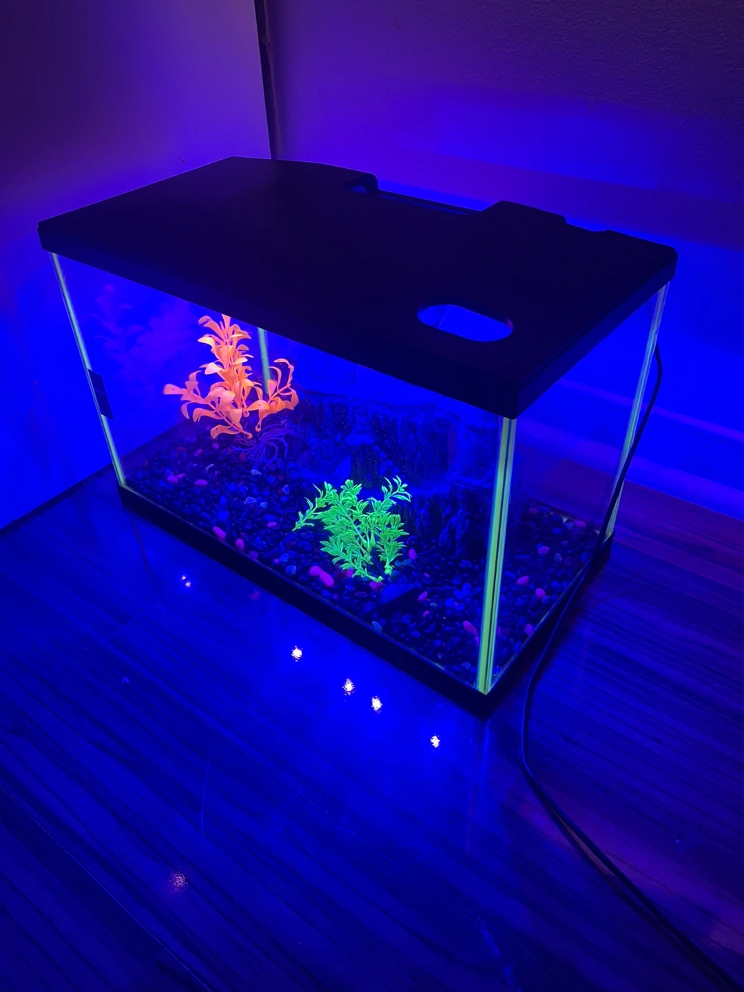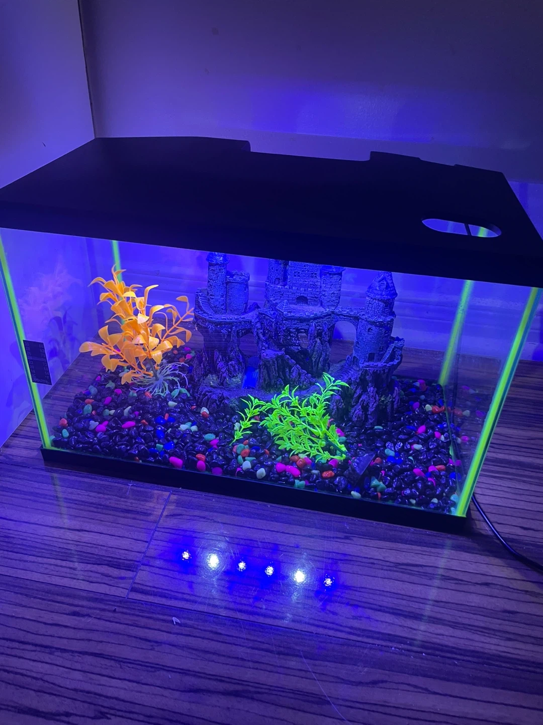 Selling a fish tank that comes with some fun accessories! It includes decorative plants and a castle, plus colourful gravel for the bottom. Ready to add some life to your space