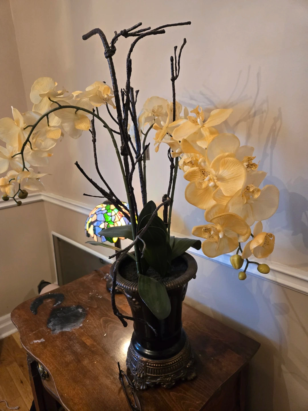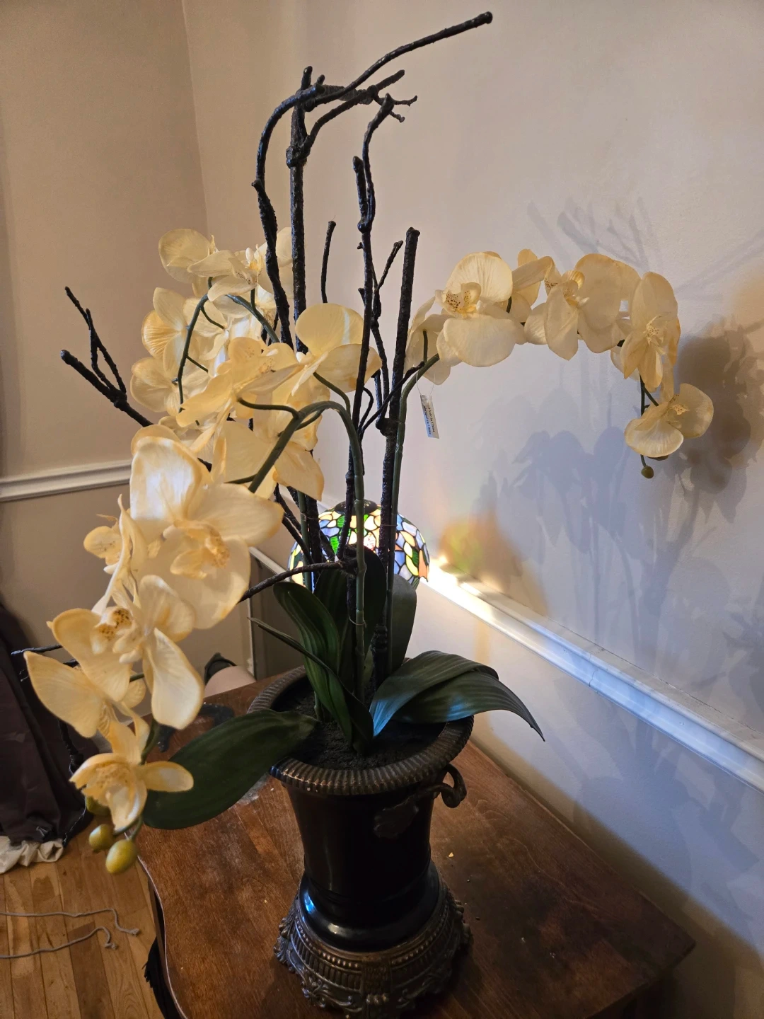 Selling a lovely artificial orchid plant that would look great in any room! It's in excellent condition and adds a touch of elegance to your space.