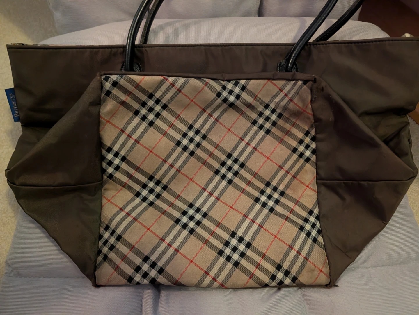Classic Burberry Blue Label tote bag in good condition! The iconic plaid pattern is featured on the sides and interior. Brown exterior. Perfect for everyday use!