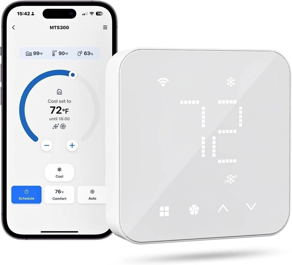 Smart Schedule: Set it and forget it! Up to 7X24h Schedules allow you to customize your heating and cooling routine, ensuring your home is always at the comfort temperature. The smart thermostat can automatically follow the schedule even when Wi-Fi is disconnected.