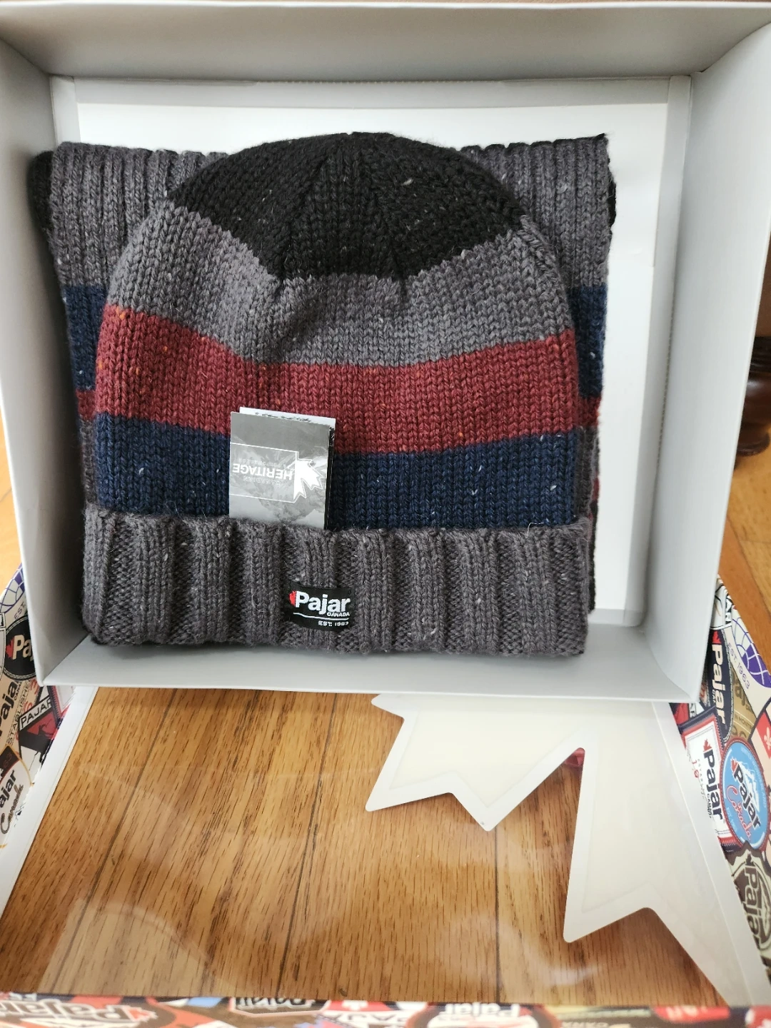Brand new PAJAR Canada hat and scarf set in the original box! The set is one-size-fits-all. Consists Wool The market price is $44.99
