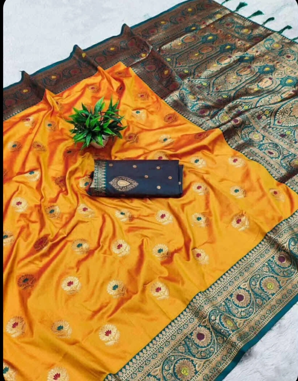 Yellow Banarasi Silk Saree