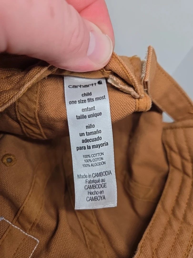 Here's a Carhartt child's hat in a lovely brown colour! It's one size fits most and made of 100% cotton, perfect for your little one.