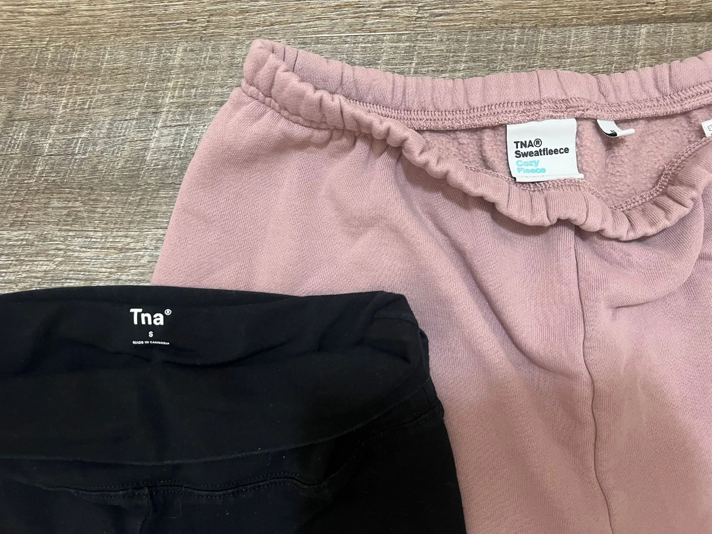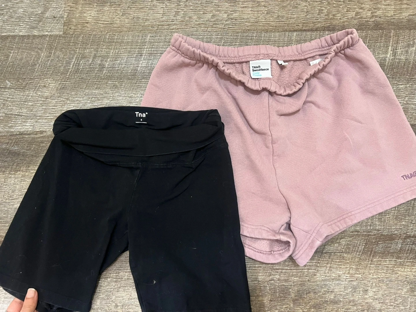 Selling a bundle of TNA shorts! Includes one pair of black biker shorts and one pair of pink sweatshorts. Both are a size small and in great condition!