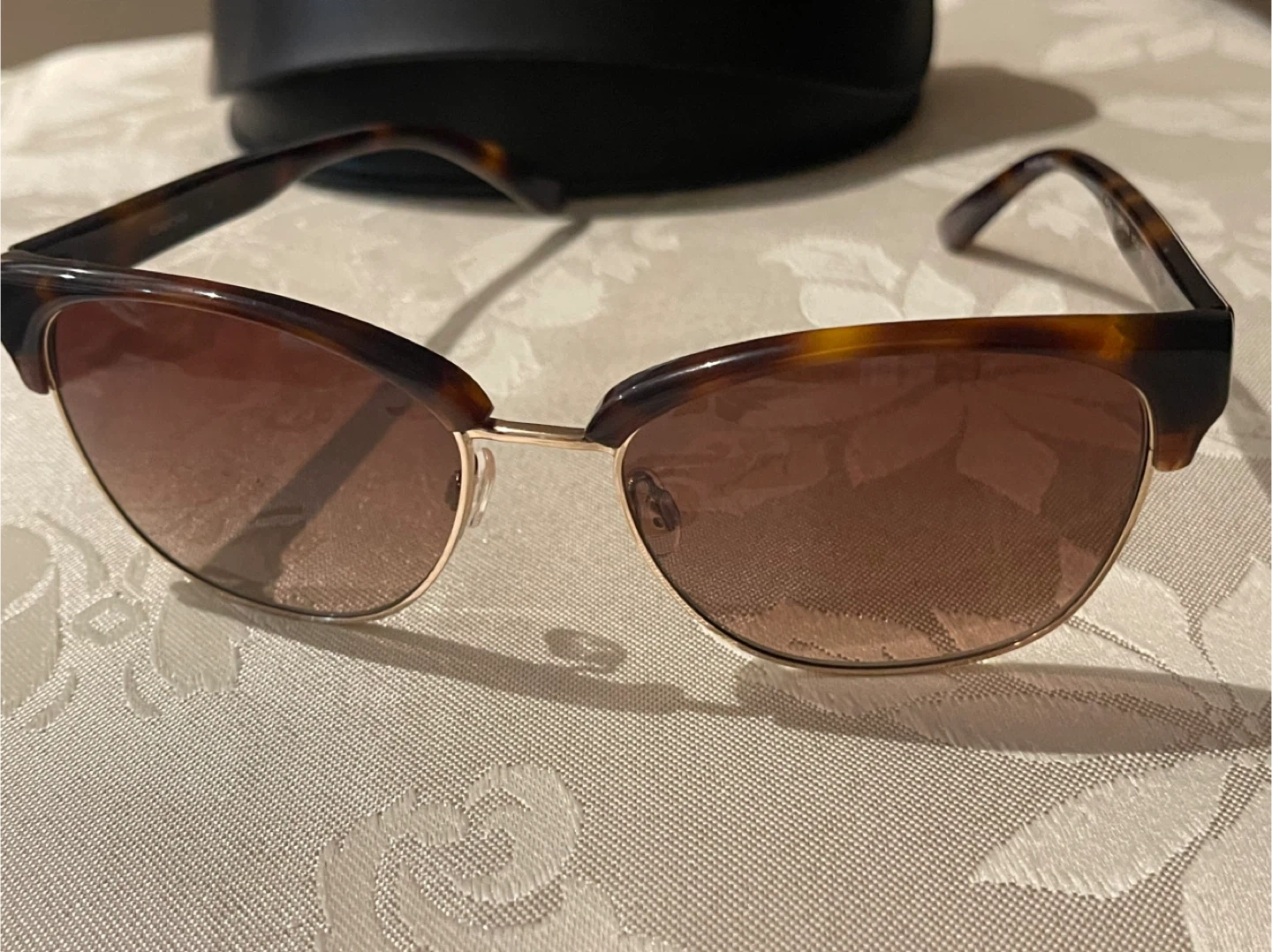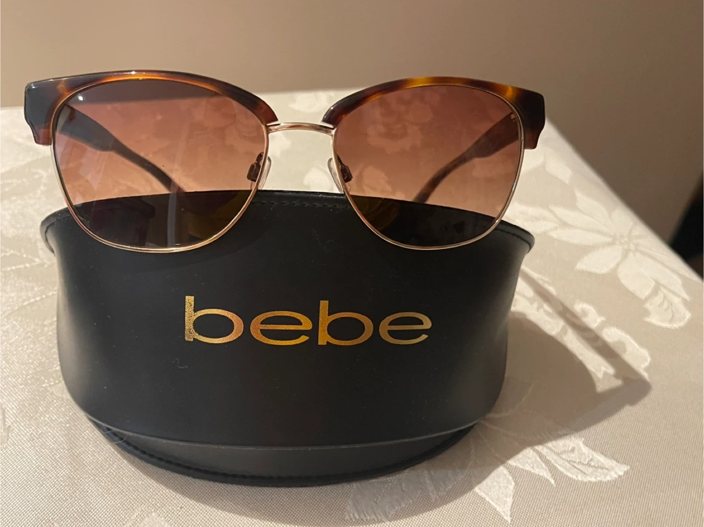 Selling a pair of Bebe sunglasses, model BB7186 Troublemaker. They feature a tortoise shell pattern and the size is 56[]17 135. Comes with the case!