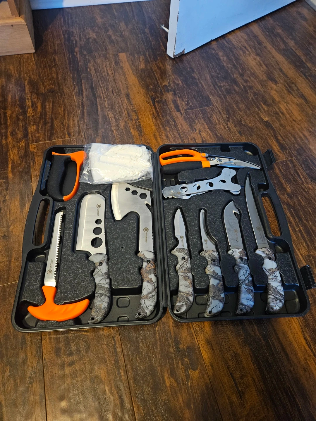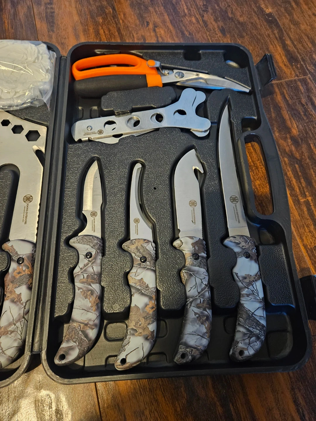 KNINE OUTDOORS Hunting Deer Knife Set Field Dressing Kit Portable Butcher Game Processor Set, 12 Pieces
