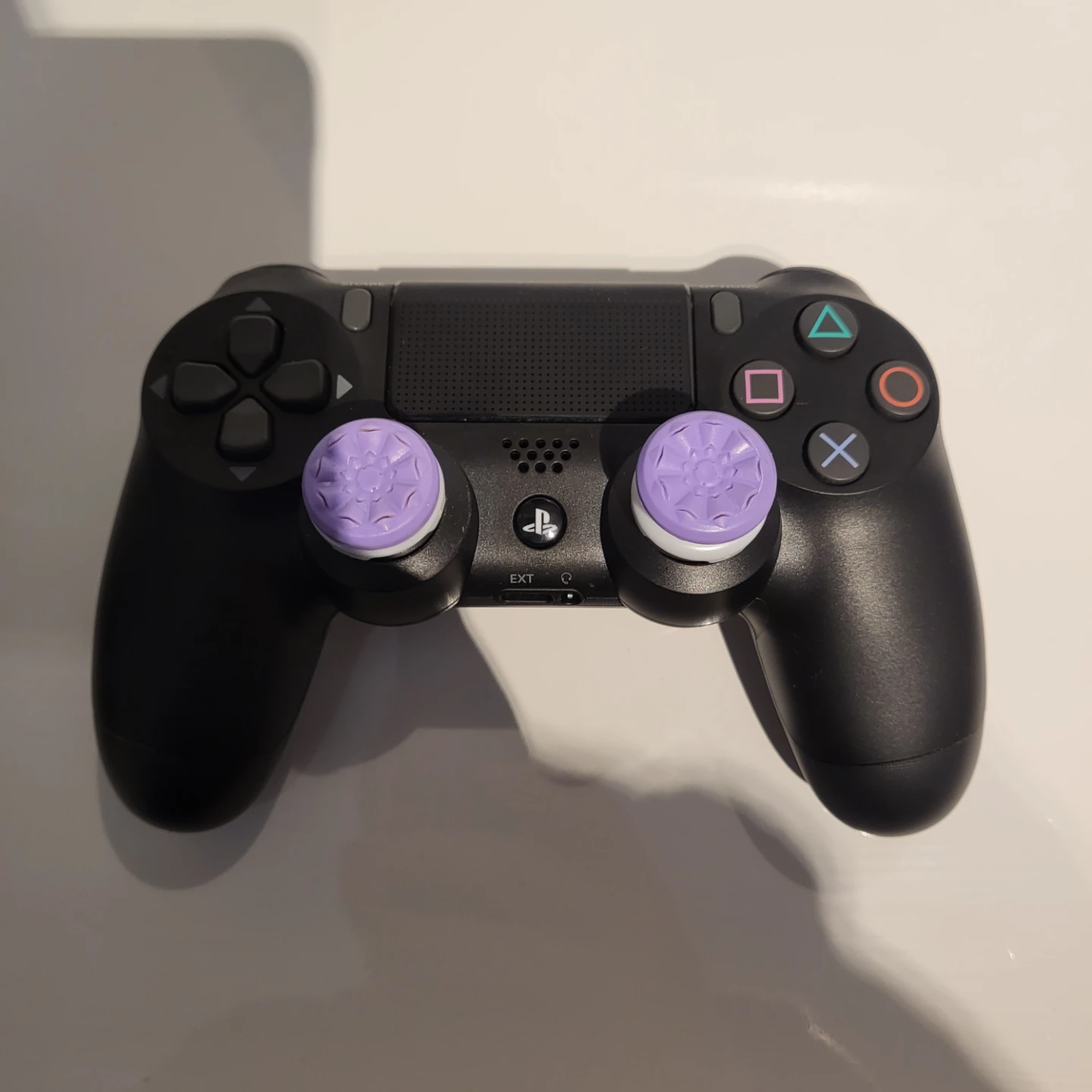 Selling a PlayStation 4 controller in good condition. It comes with purple thumb grips already installed. Ready for a new owner to enjoy!