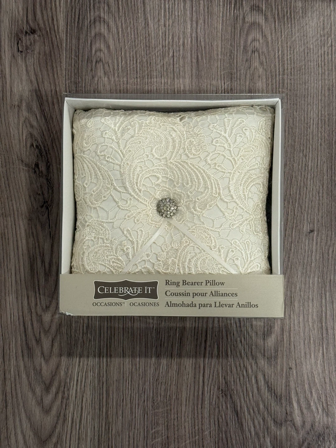Selling a brand new ring bearer pillow from Celebrate It! It's in its original box and ready to be part of your special day. The pillow features a beautiful lace design with a decorative embellishment in the center. Perfect for adding a touch of elegance to your wedding ceremony! Thank you for visiting my listing!