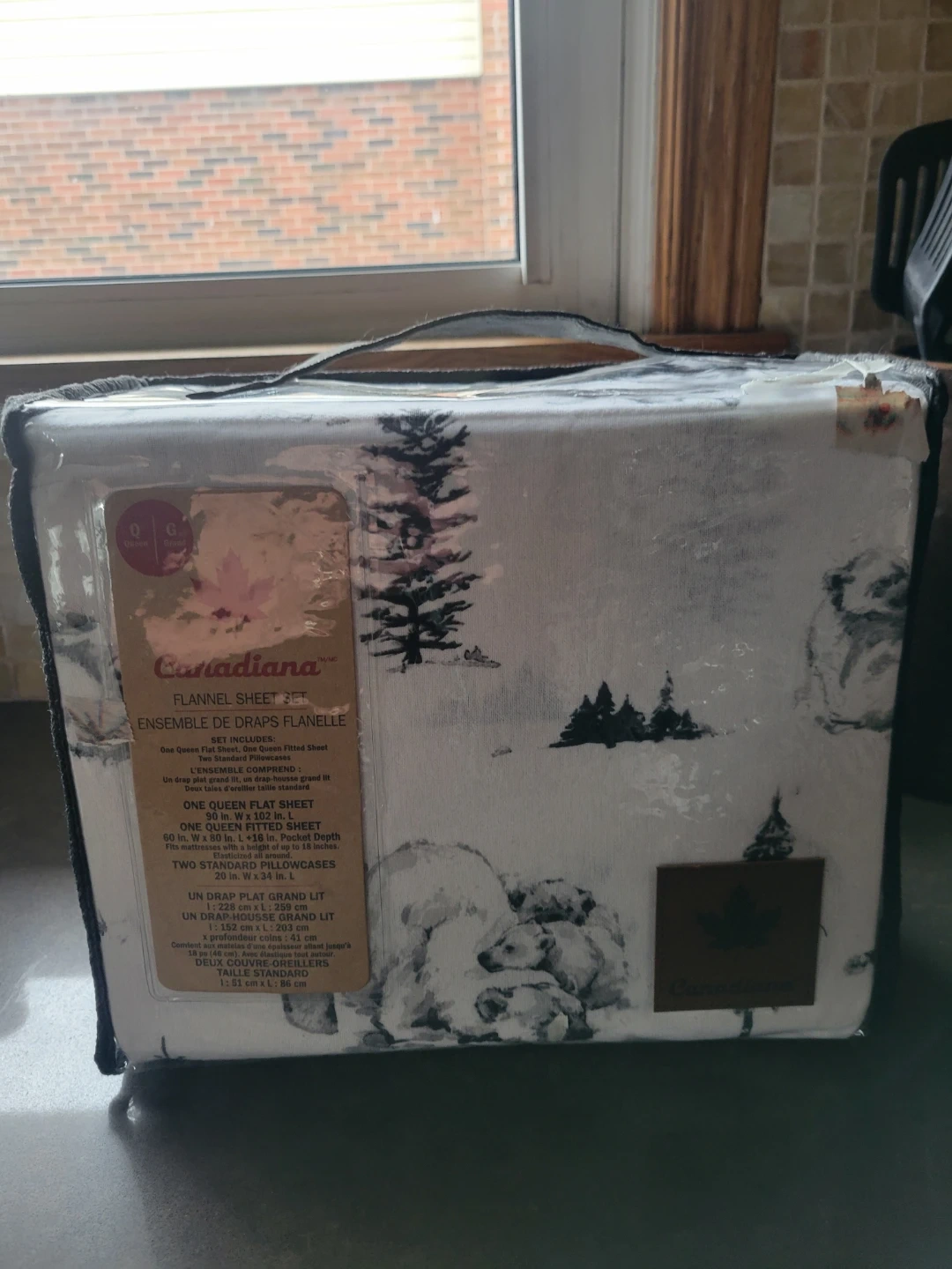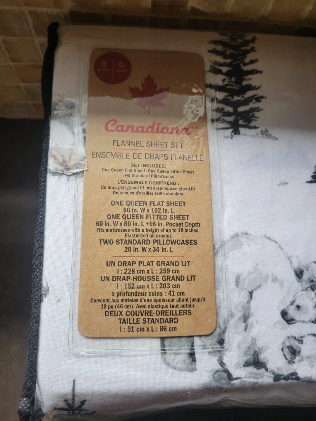 Canadiana Flannel Sheet Set - Queen Size - NEW. polar bears
