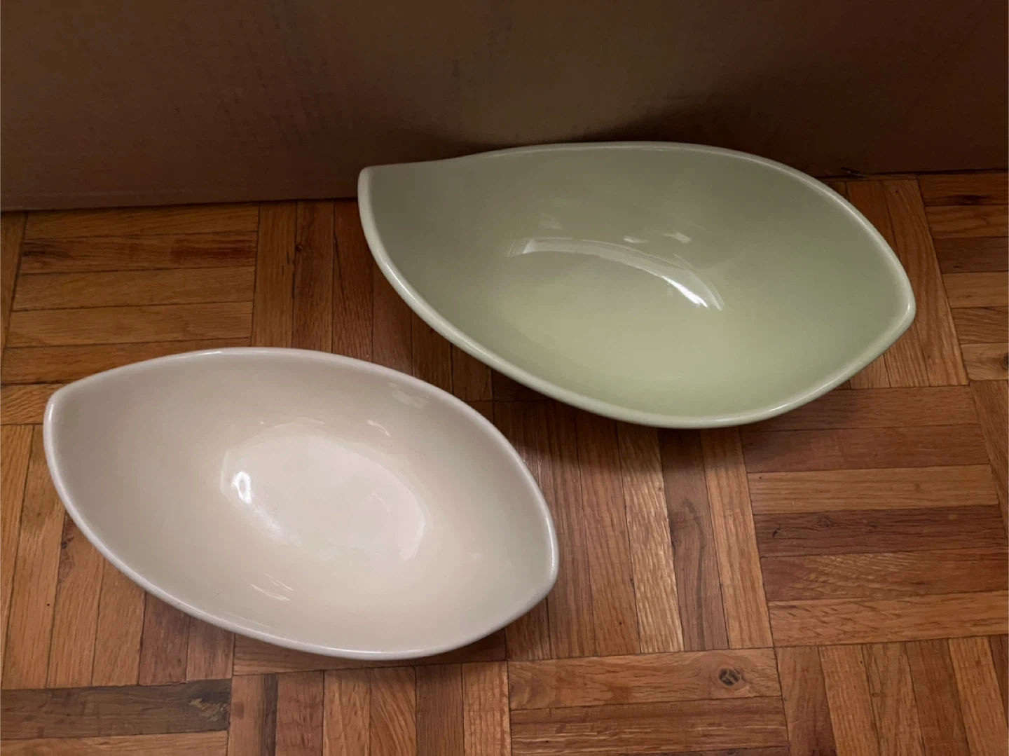 🤍Selling a set of two Verdici snack bowls! 💚One is a lovely light green and the other is a creamy white colour.