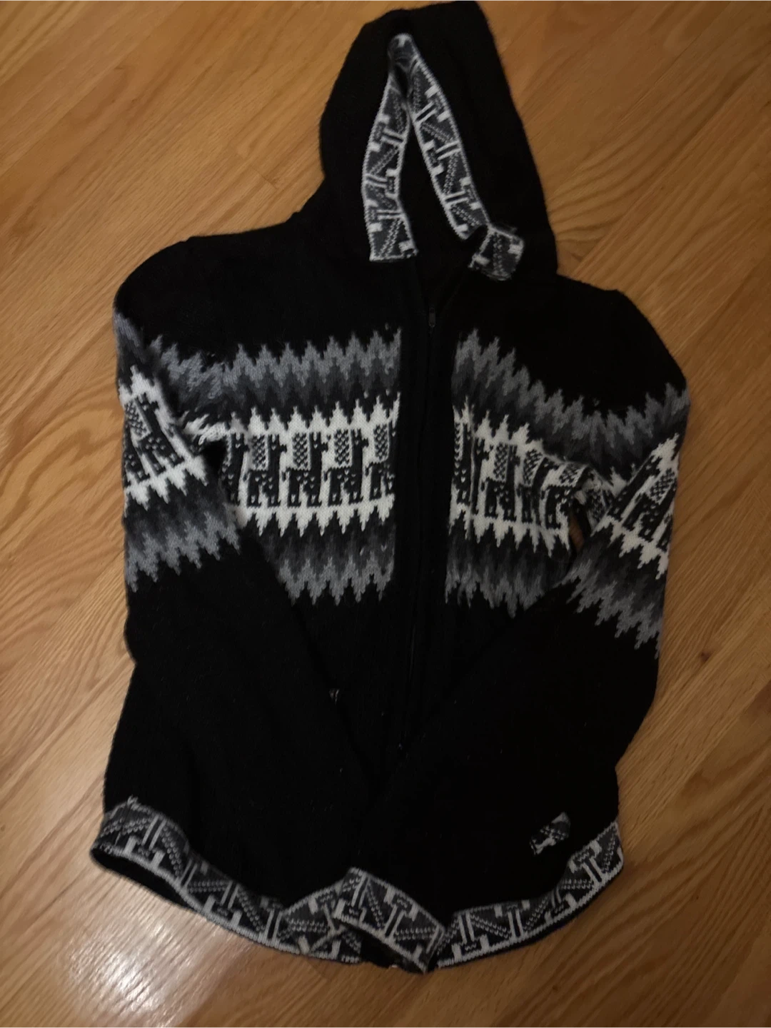 Black Patterned llama Peruvian Zip-Up Hoodie