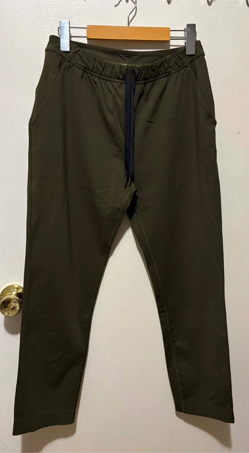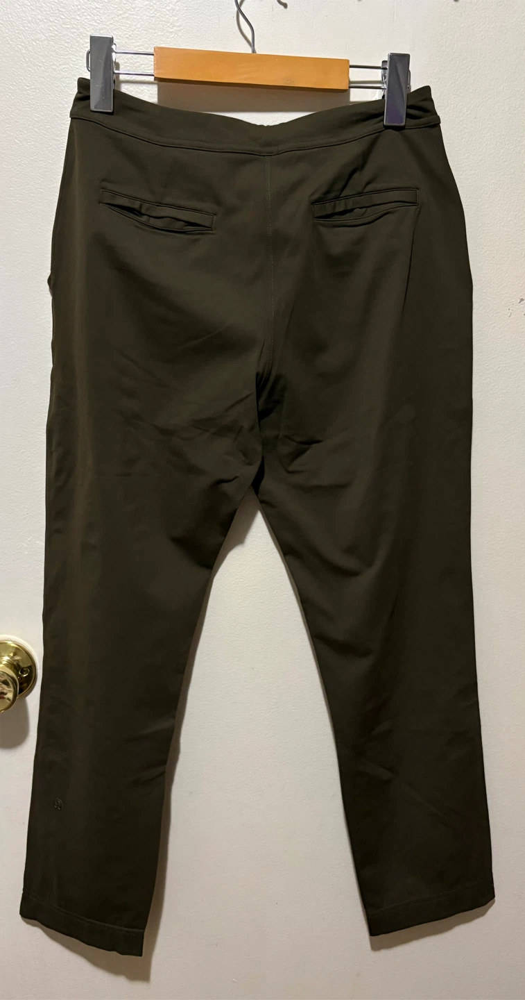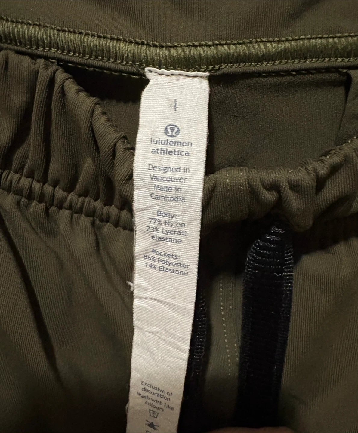 Selling a Lululemon pants in olive green, size 4. They're in great condition and made with 77% nylon and 23% Lycra elastane for the body. The pockets are 86% polyester and 14% elastane. Super comfy!