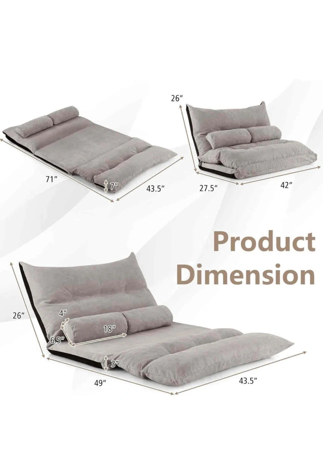 Adjustable Floor Sofa Bed - Futons Sets with 2 Pillows