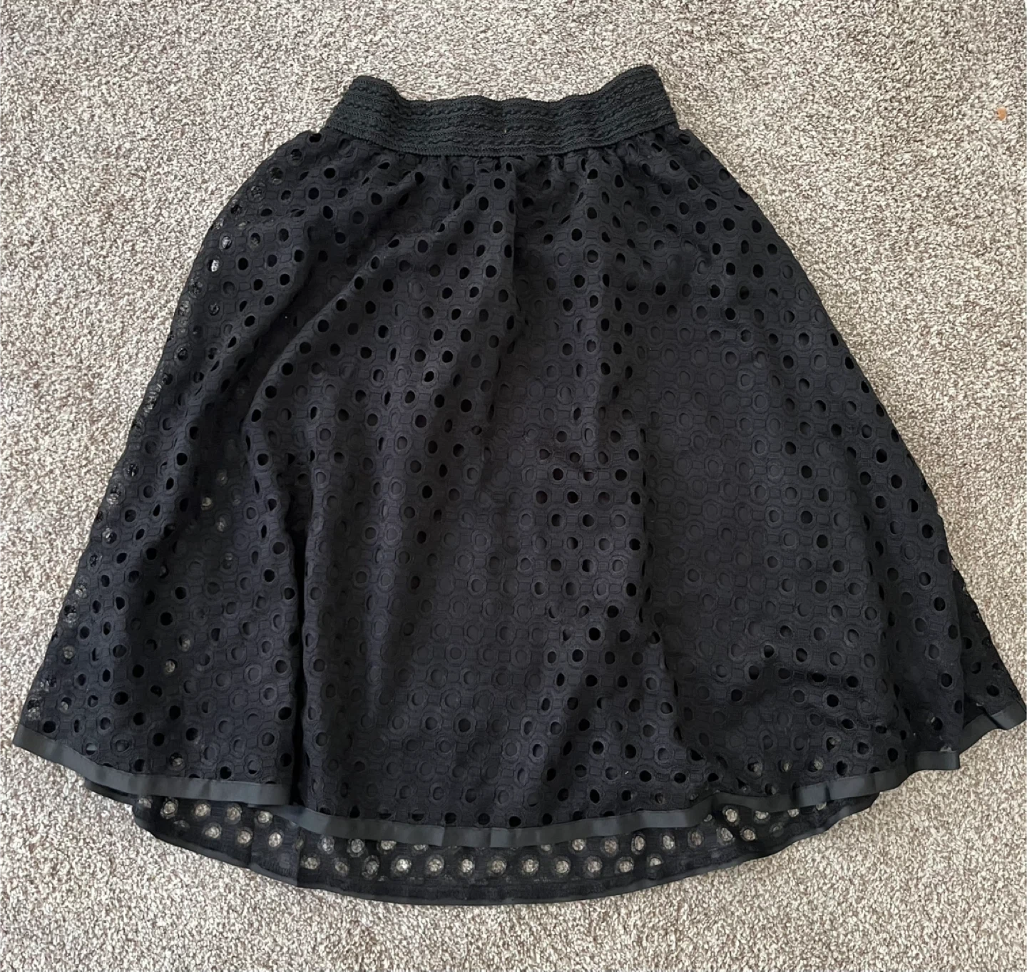 Selling a cute black eyelet skirt! It's in great condition and would be perfect for holiday season. The eyelet detailing adds a nice touch!