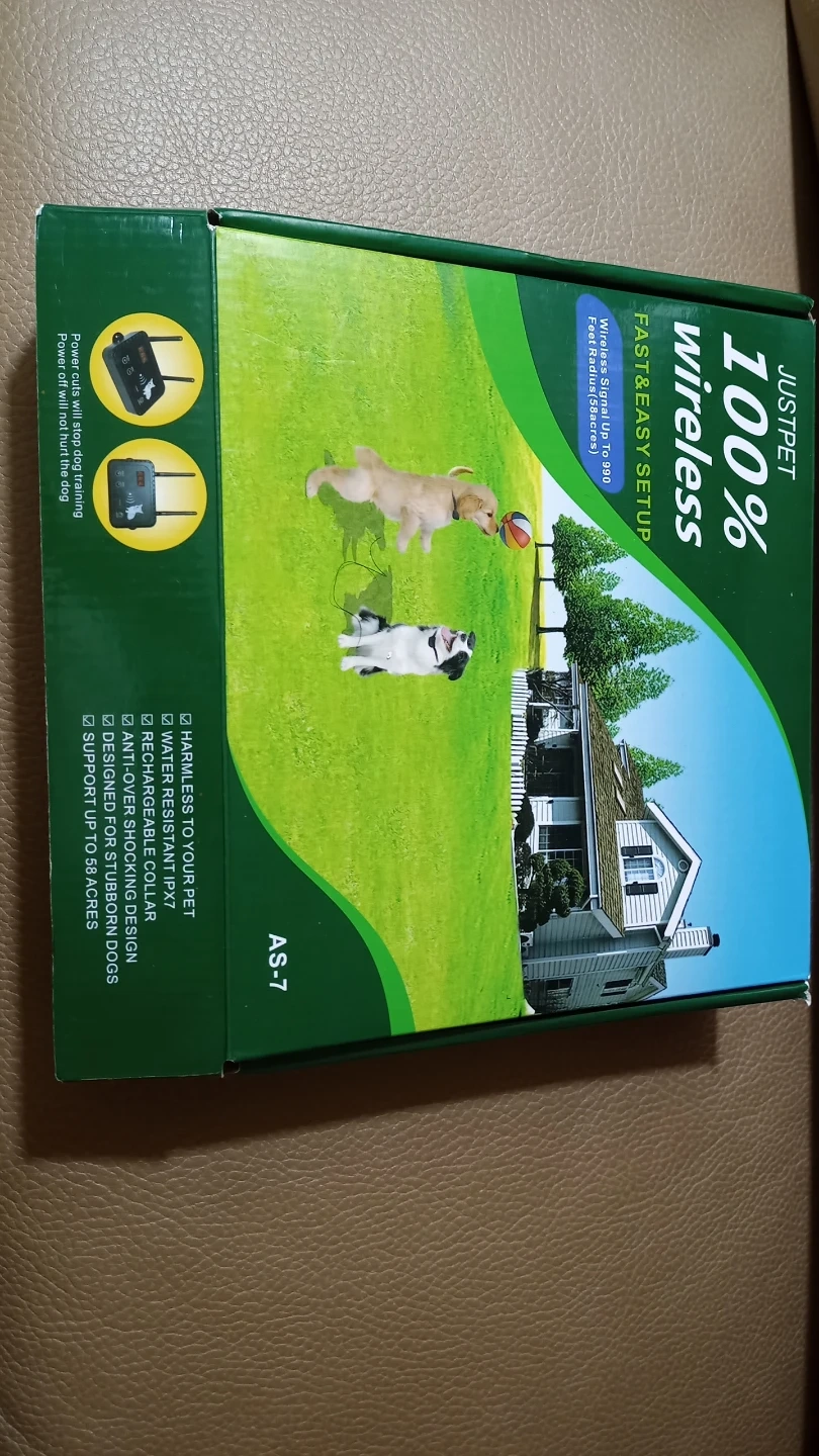 Selling a JUSTPET 100% wireless dog fence system. It's designed for a fast and easy setup. The wireless signal can cover up to 998 feet radius (0.58 acres). It's harmless to your pet, water-resistant, and features a rechargeable collar. This system is designed for stubborn dogs and can support up to 50 acres. Includes all components and the original box!