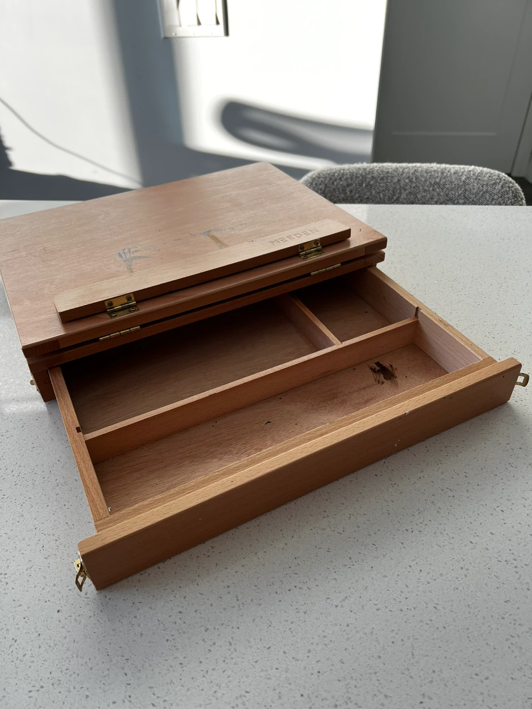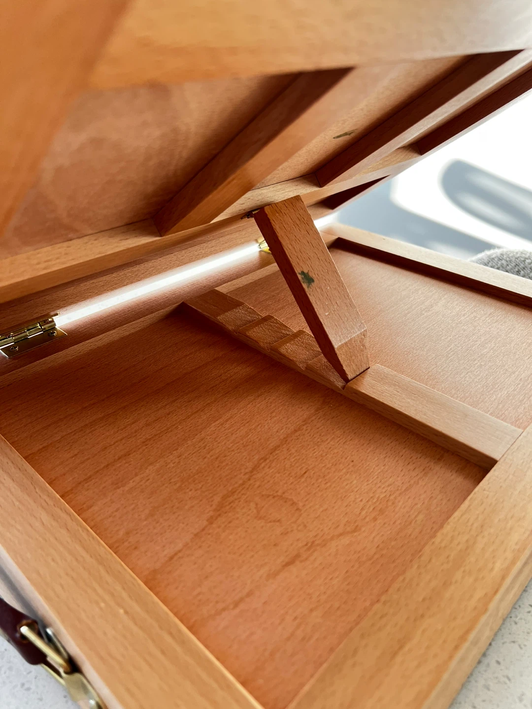 Wooden tabletop easel / sketchbox made of natural beech wood.