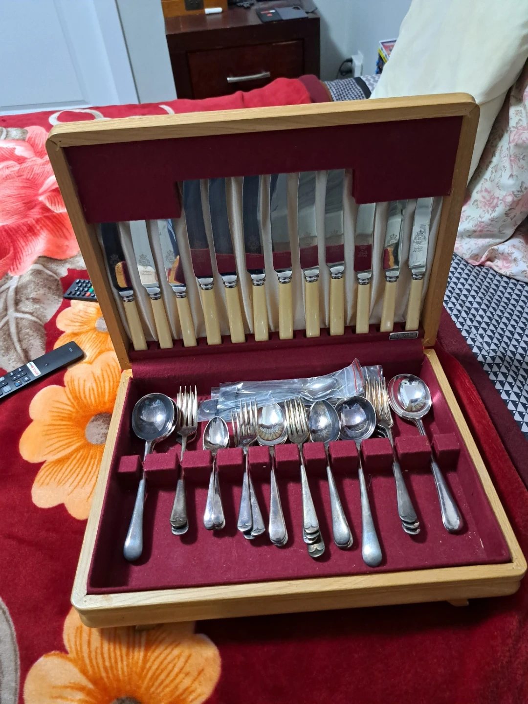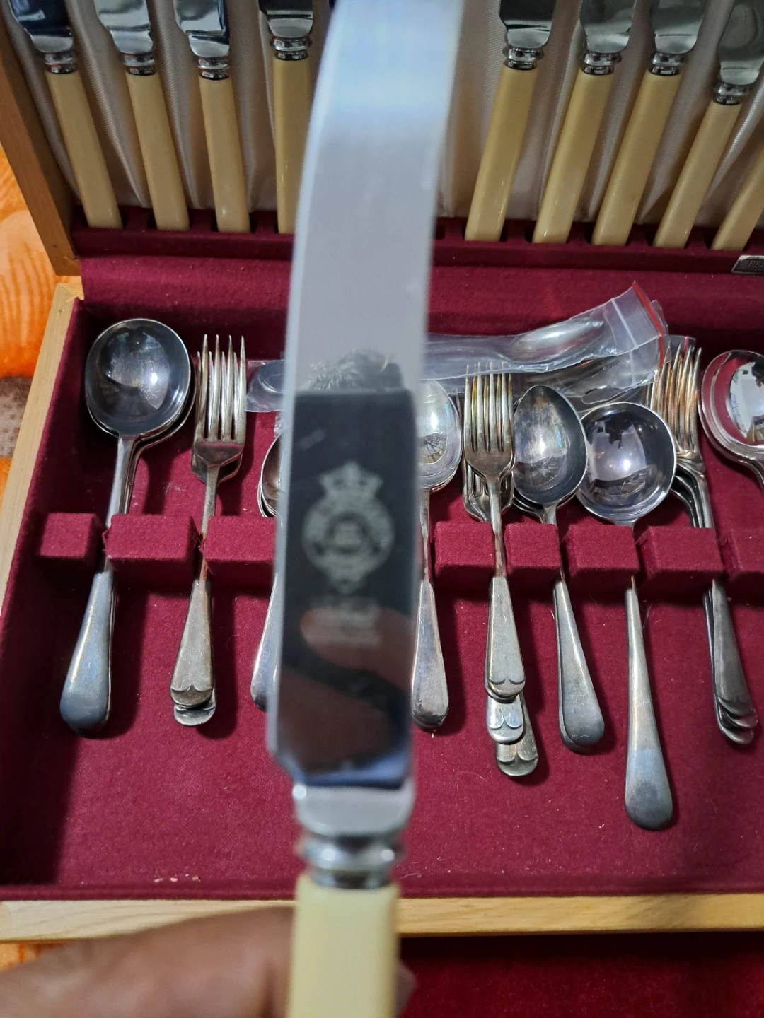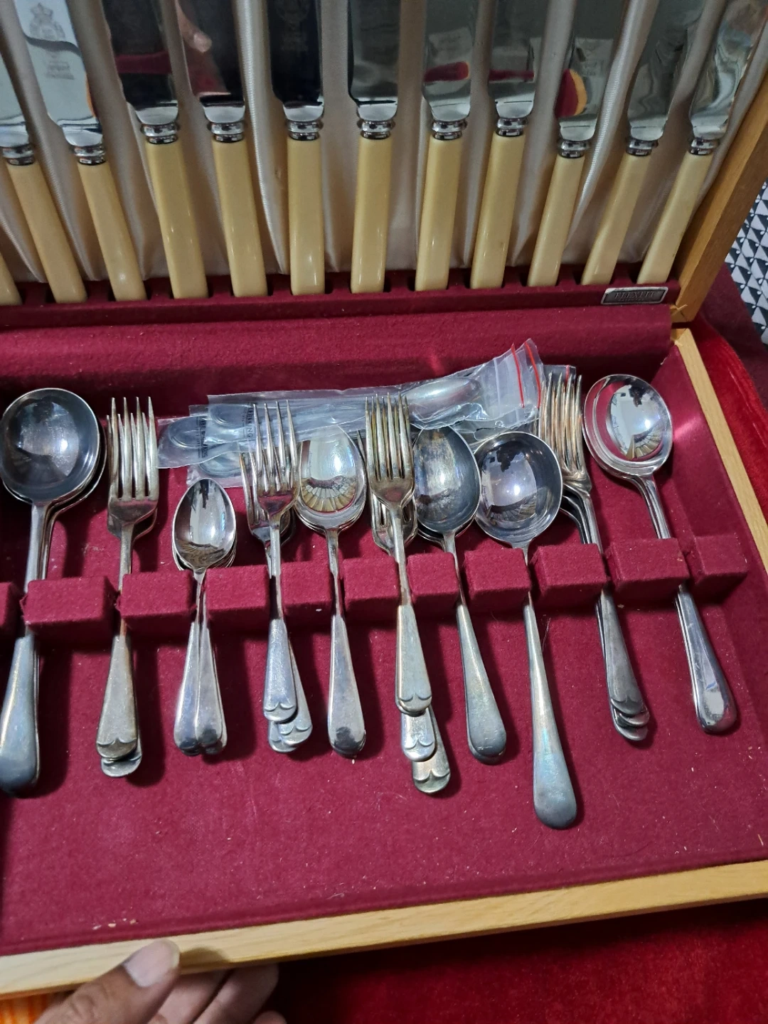 Selling a complete Viners cutlery set, neatly arranged in its original box! It includes knives, forks, and spoons, all in good condition. Perfect for adding a touch of elegance to your dining experience