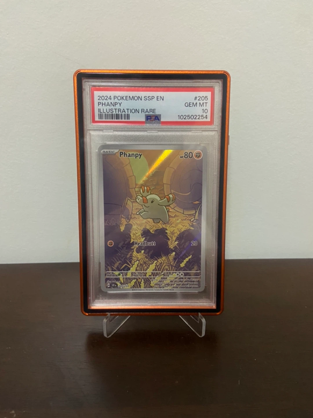 Selling a graded Phanpy Illustration Rare Pokemon card. It's a 2024 Pokemon SSP EN card, graded GEM MT 10 by PSA. Great condition!