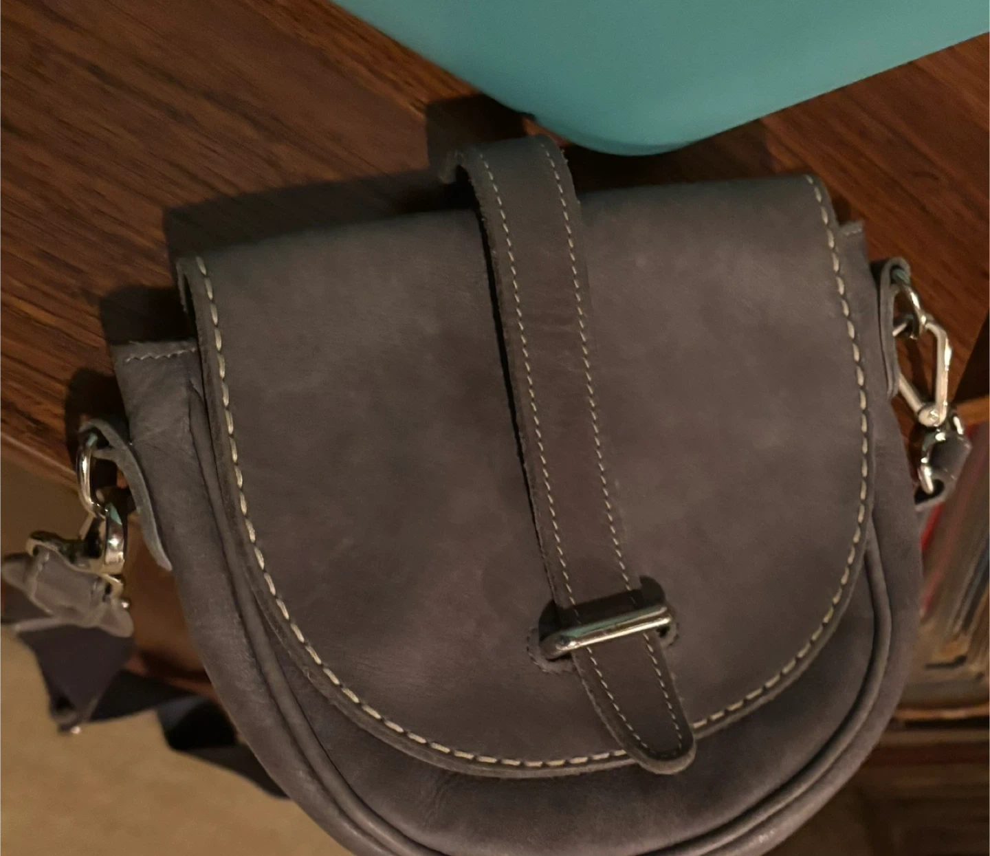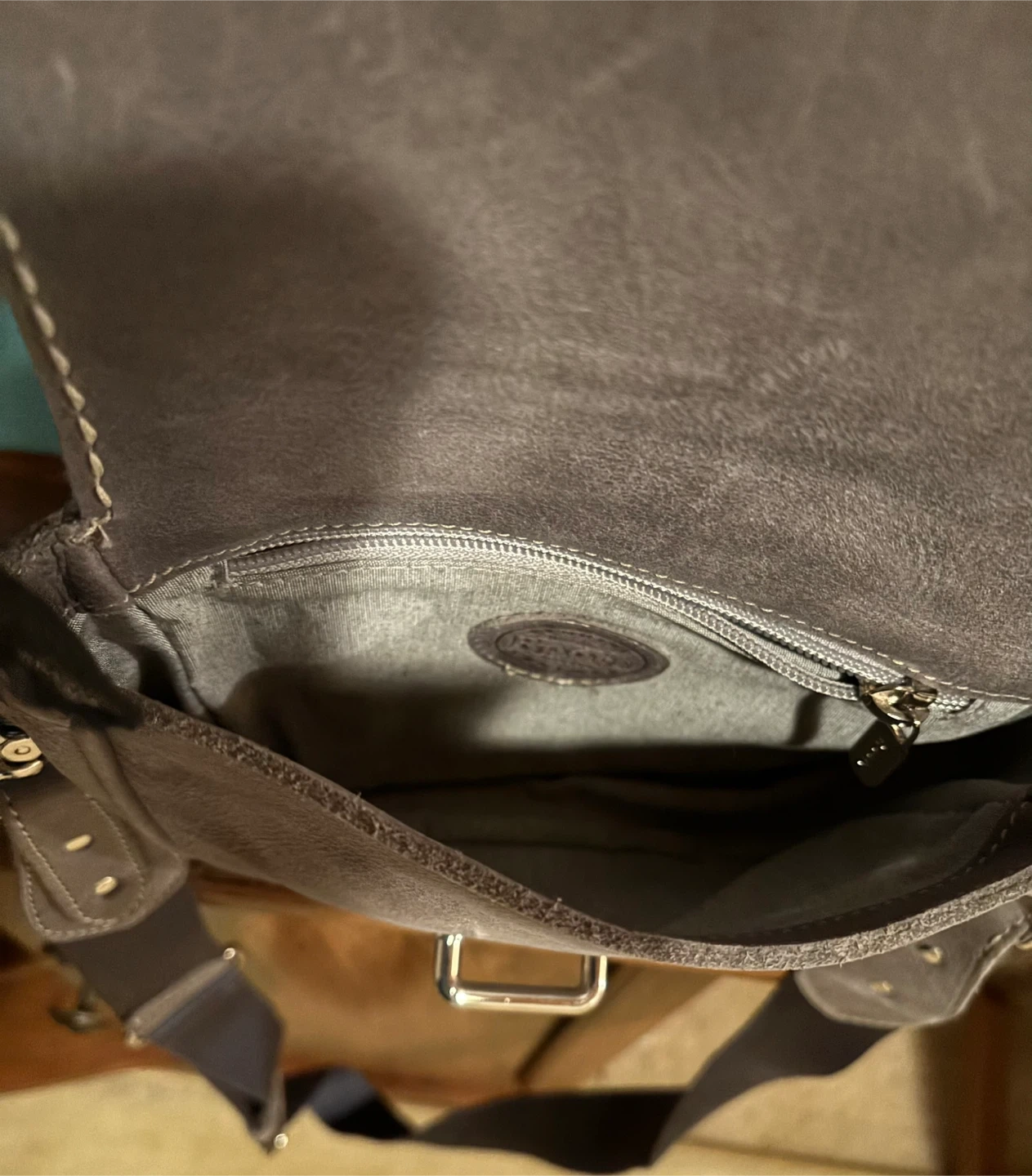 Selling a Roots crossbody bag in a lovely grey colour. It's made of leather and has a zipper on the back. Great for everyday use!