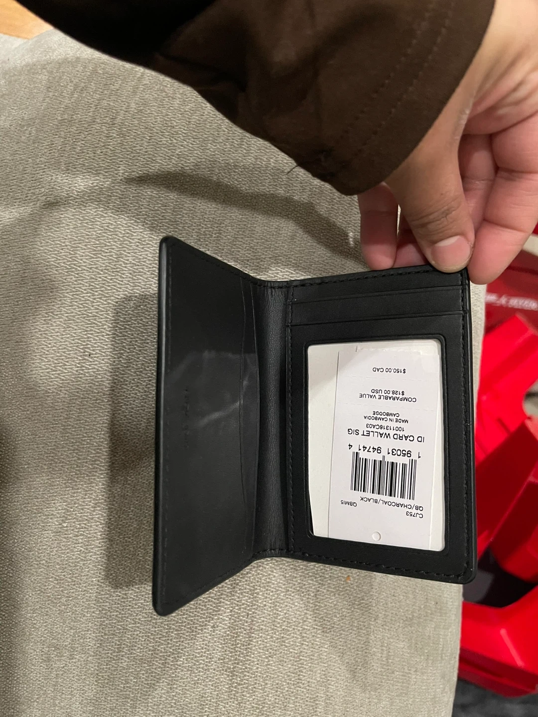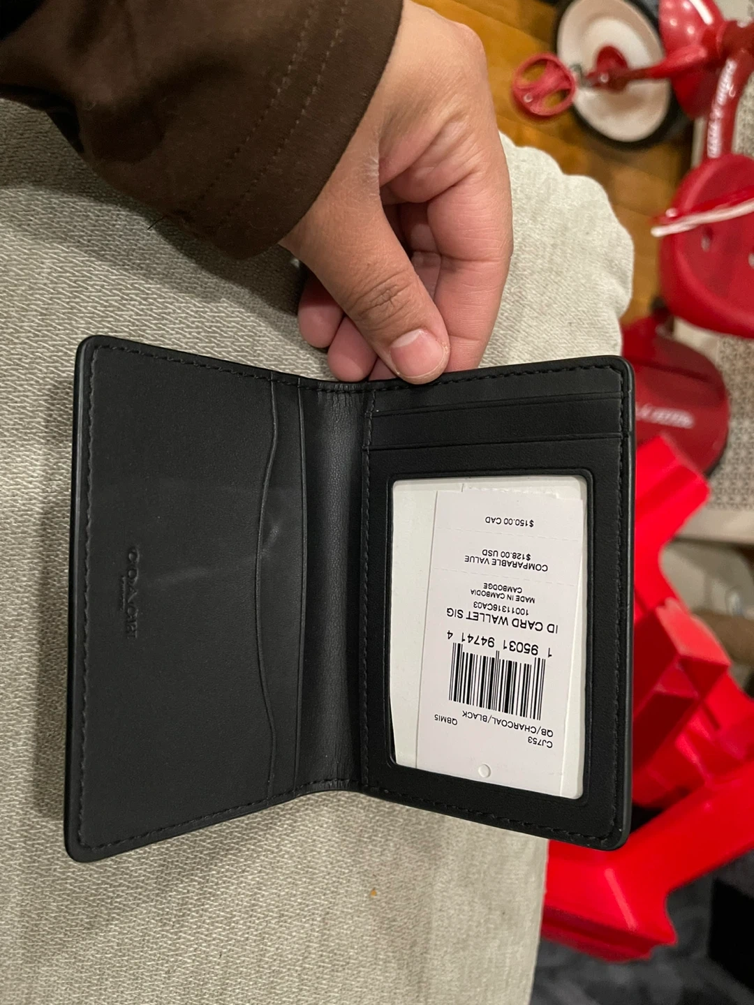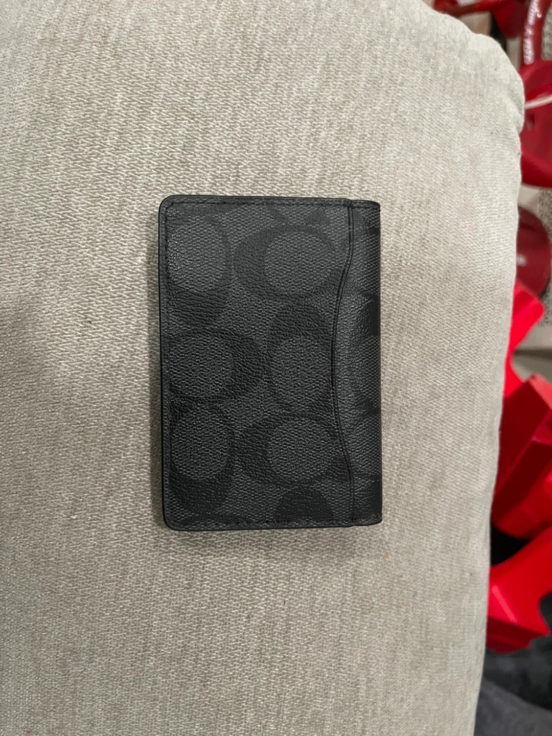 Selling a Coach ID card wallet in black. It features the signature Coach design. Originally bought for $128 USD, this compact wallet is perfect for carrying your essential cards and ID