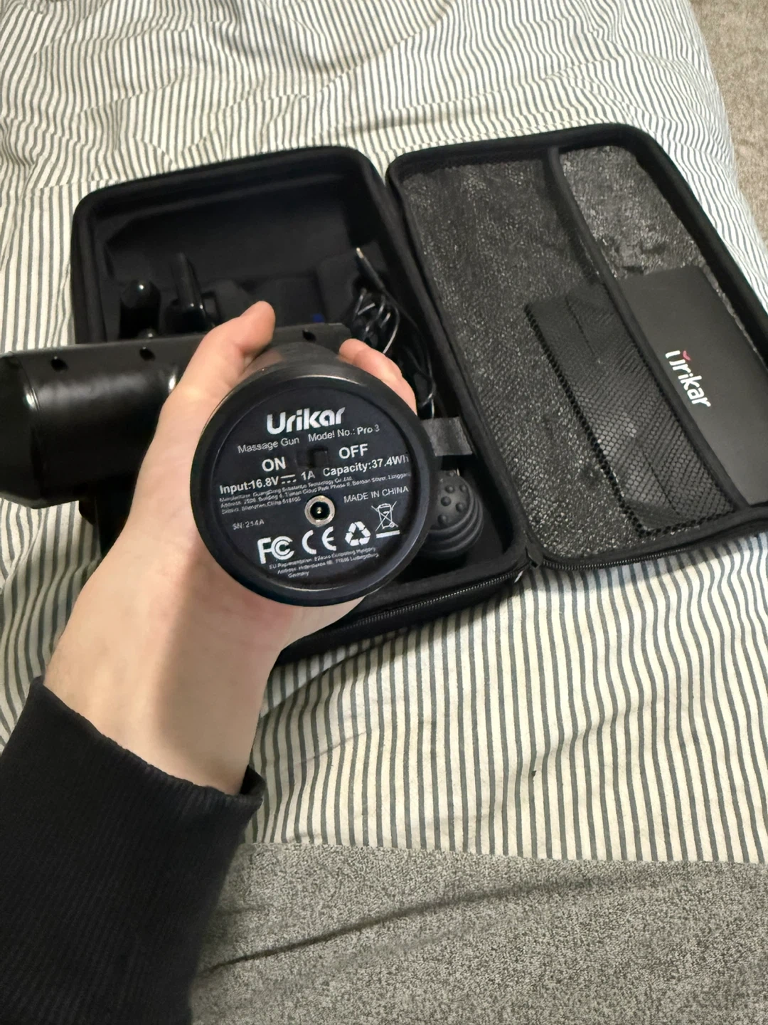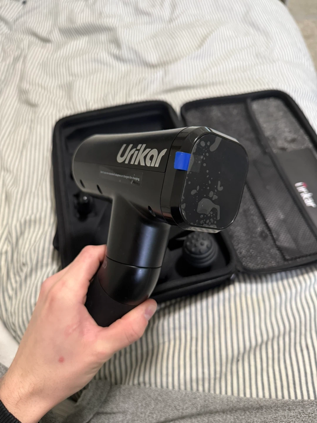 Urikar Pro 3 massage gun in great condition! Basically brand new, used twice maybe. Comes with the case and all the attachments. This massage gun is perfect for relieving muscle soreness and tension after a workout or a long day. It's lightweight and portable, so you can take it with you wherever you go!