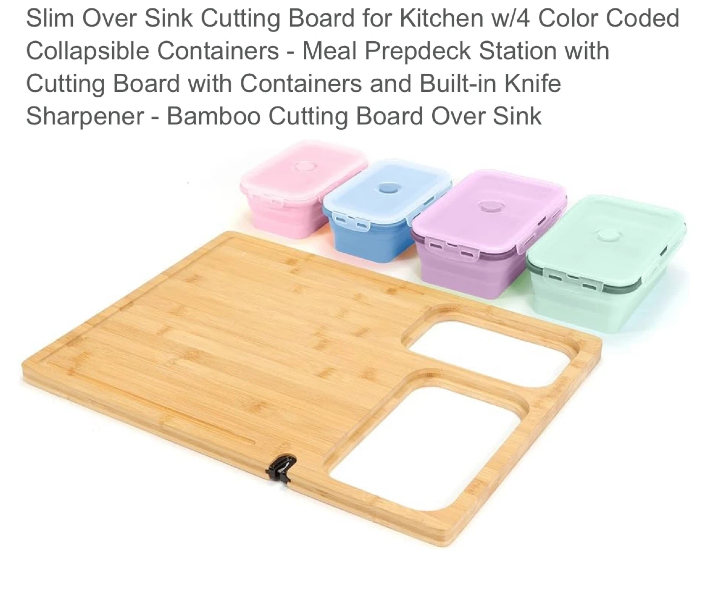 This Chop N Drop Slim cutting board is perfect for expanding your countertop space and increasing efficiency! It comes with 4 colour coded collapsible containers, a built-in knife sharpener, and a large cutting area. The containers are dishwasher and microwave safe, and feature snap lock air-tight lids. Great for meal prep!