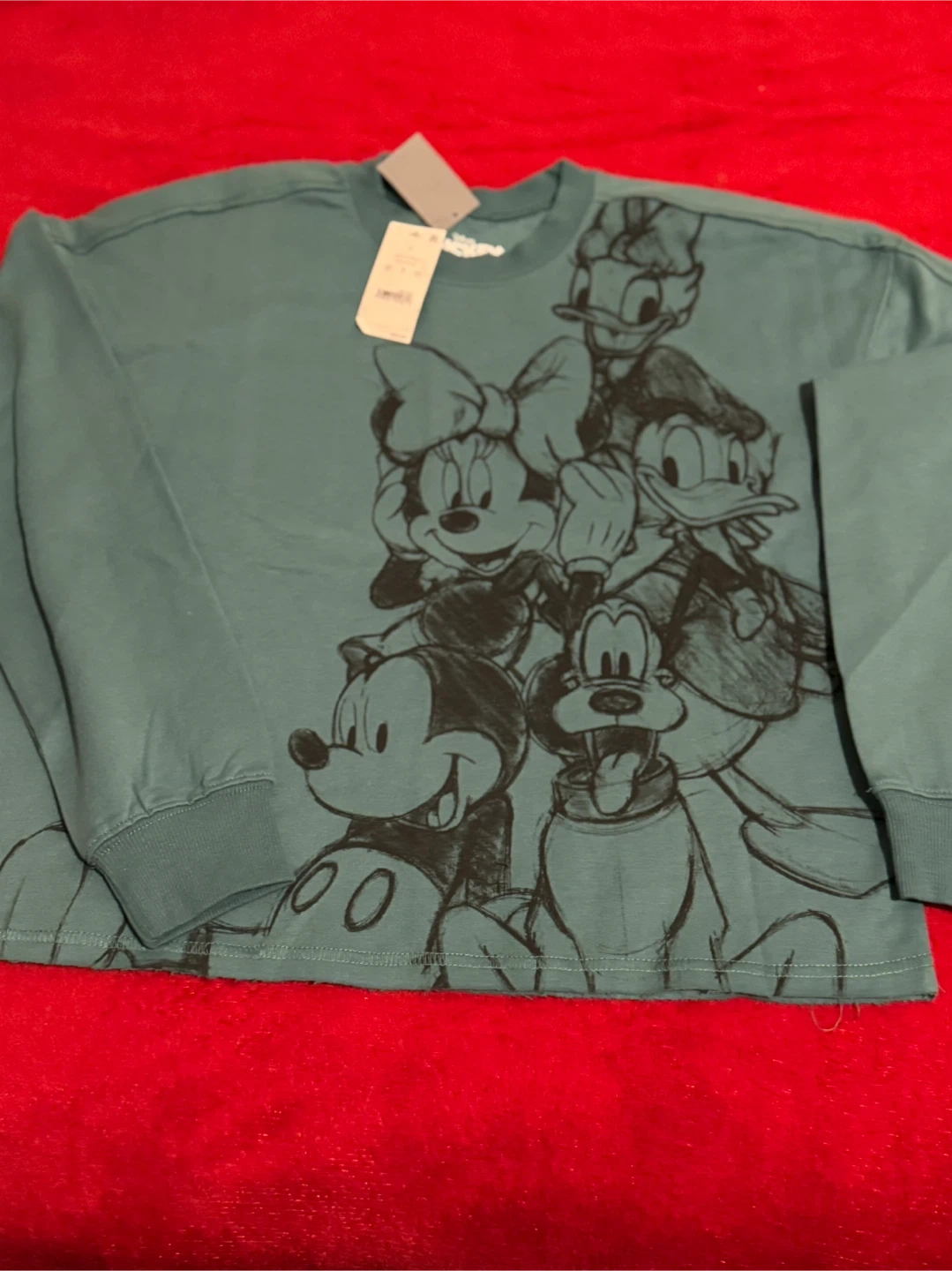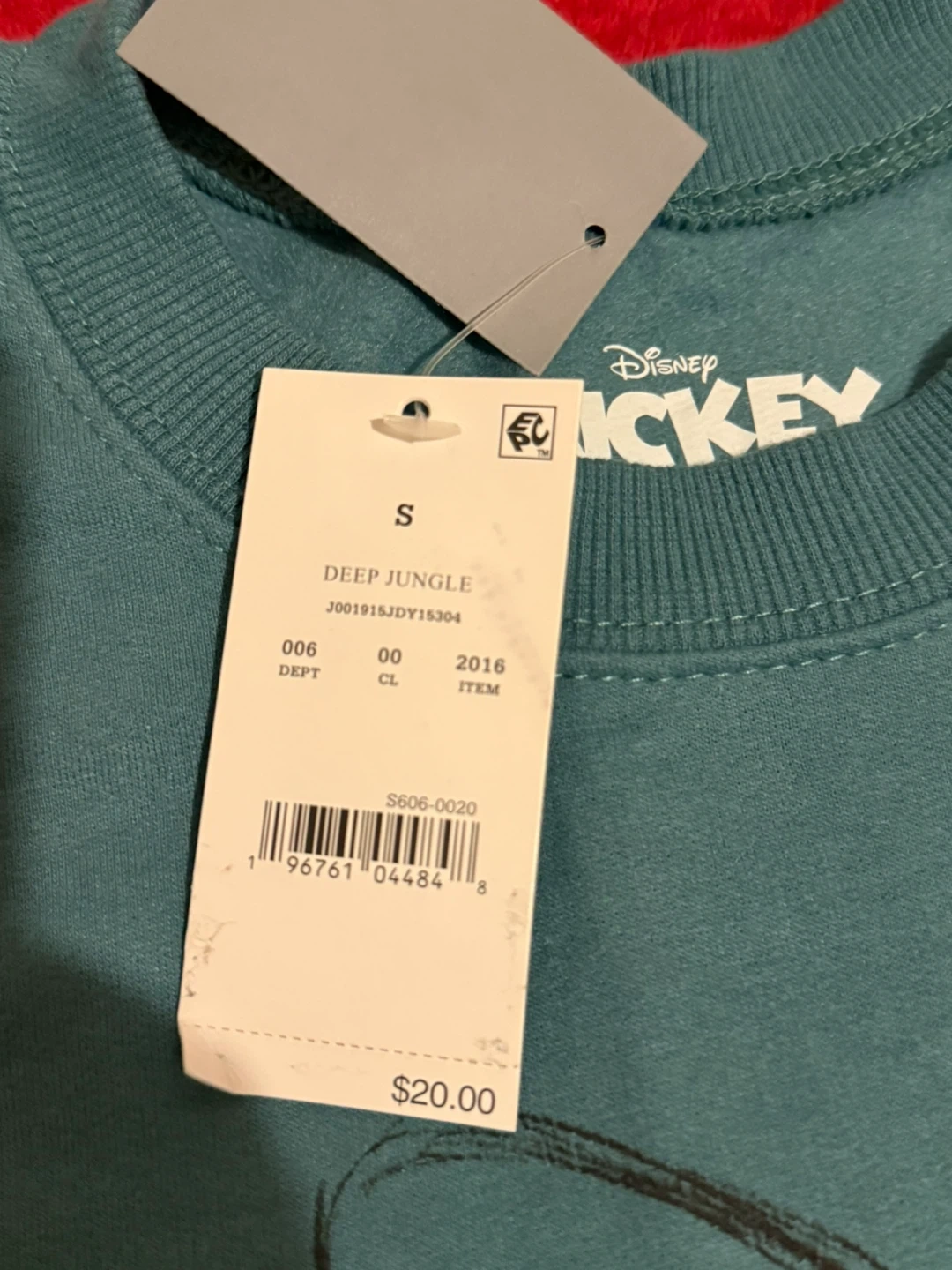 This is a Disney sweatshirt featuring Mickey Mouse and his friends! It's a size small and has a 'Deep Jungle' design. The original price was $20