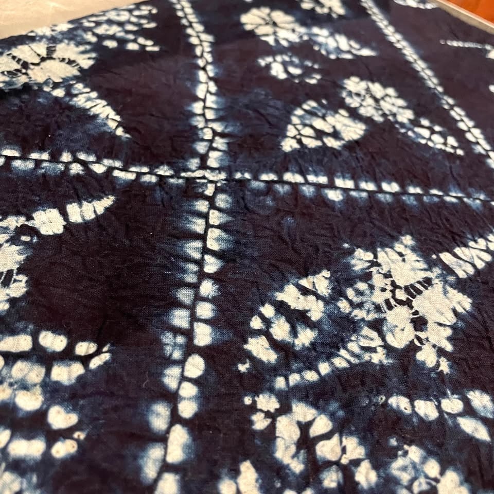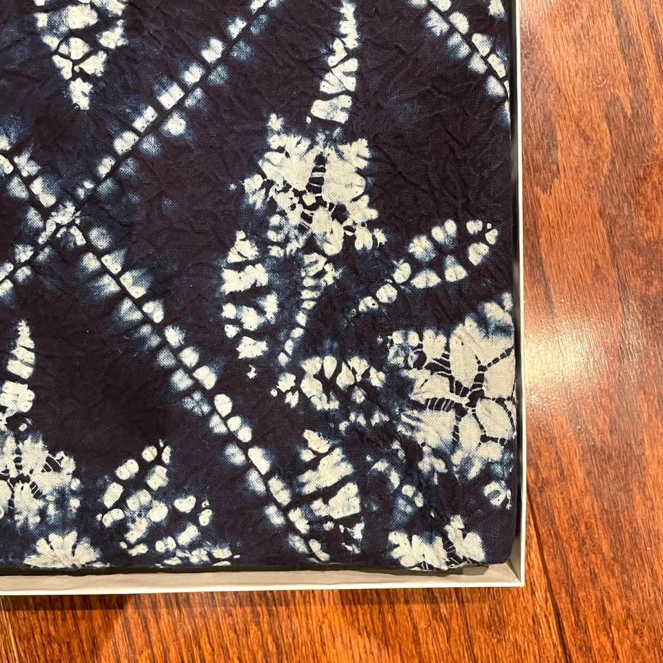 This large, authentic Japanese tie-dye textile is dyed using traditional plant dyes (本草木染), resulting in a gorgeous deep indigo color and unique hand-tied patterns — each piece is one of a kind. Carefully crafted by skilled artisans, it offers natural luster, lasting color, and a timeless charm that deepens with use.