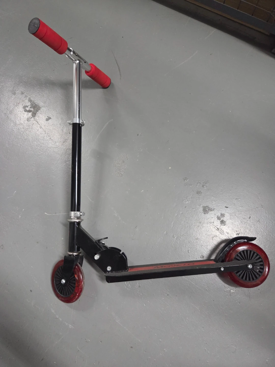 Selling a Movelo scooter in great shape! It's black with red accents on the wheels and handlebars. Perfect for getting around the neighbourhood or just having some fun