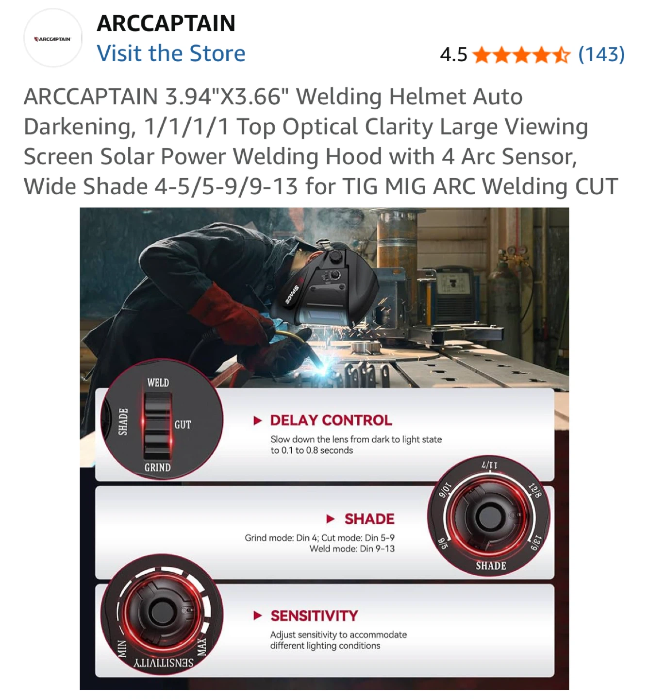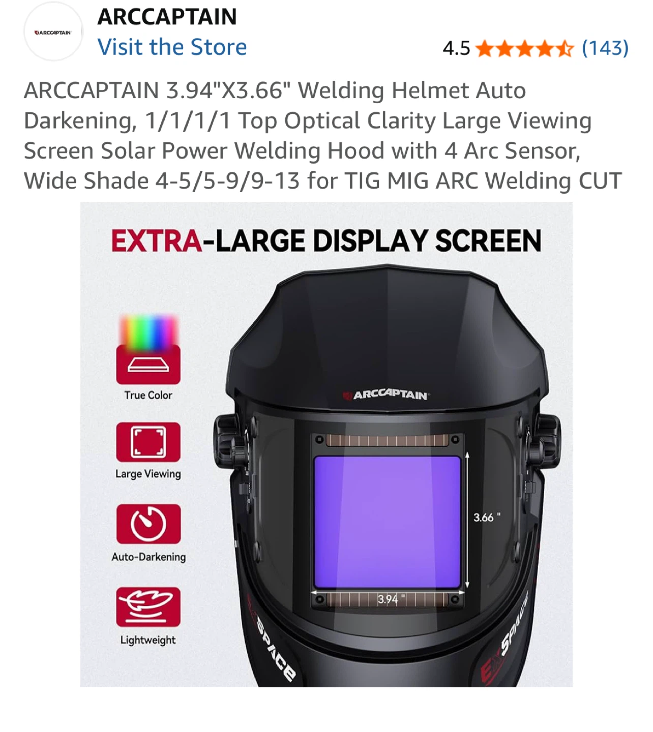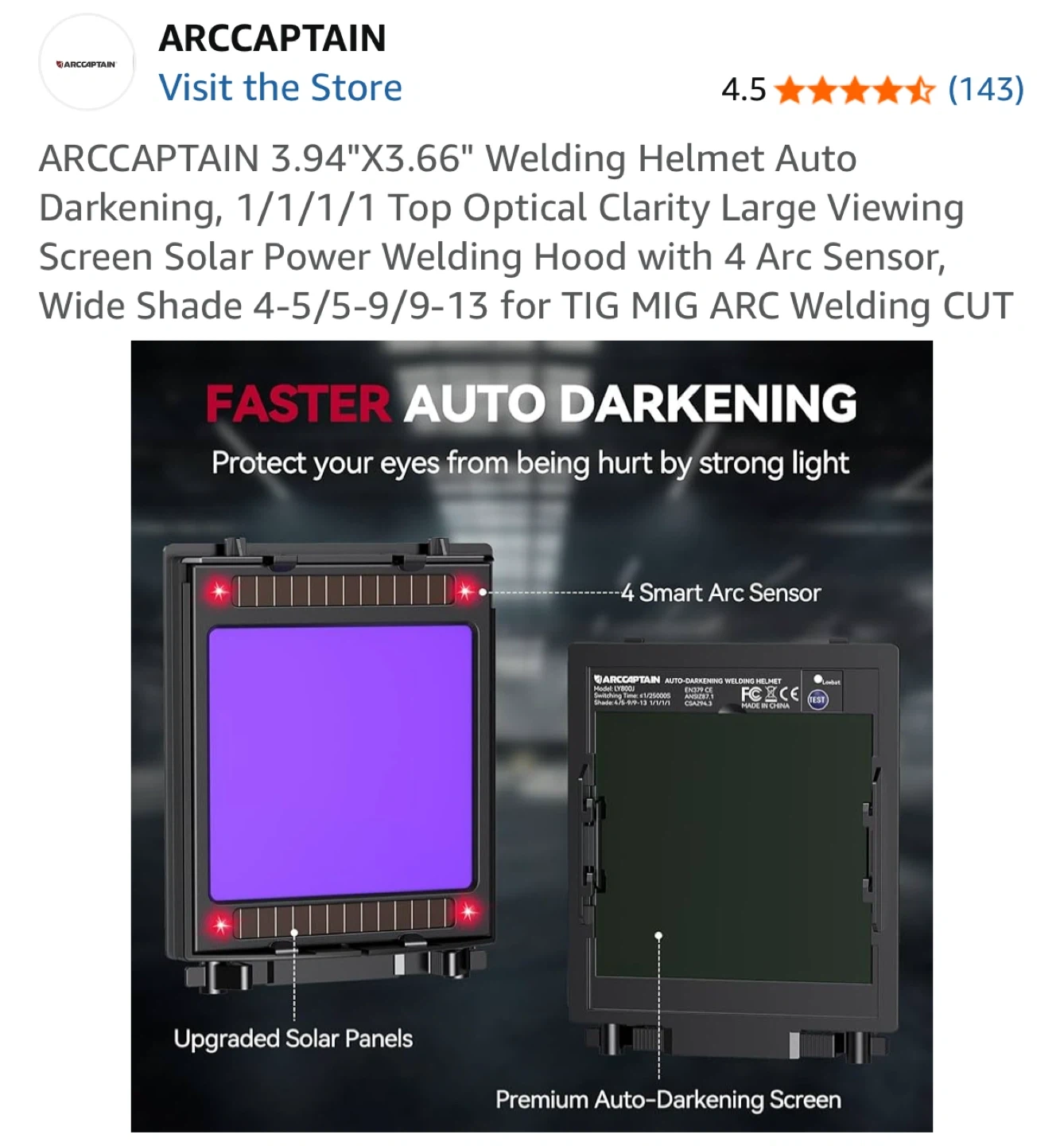 ARCCAPTAIN Auto Darkening Welding Helmet