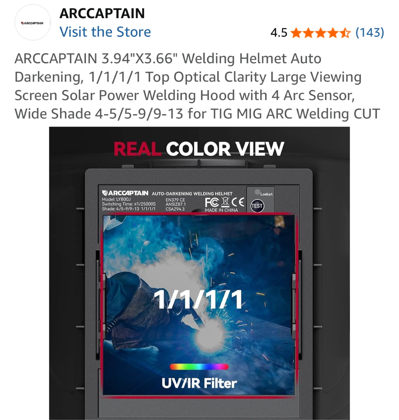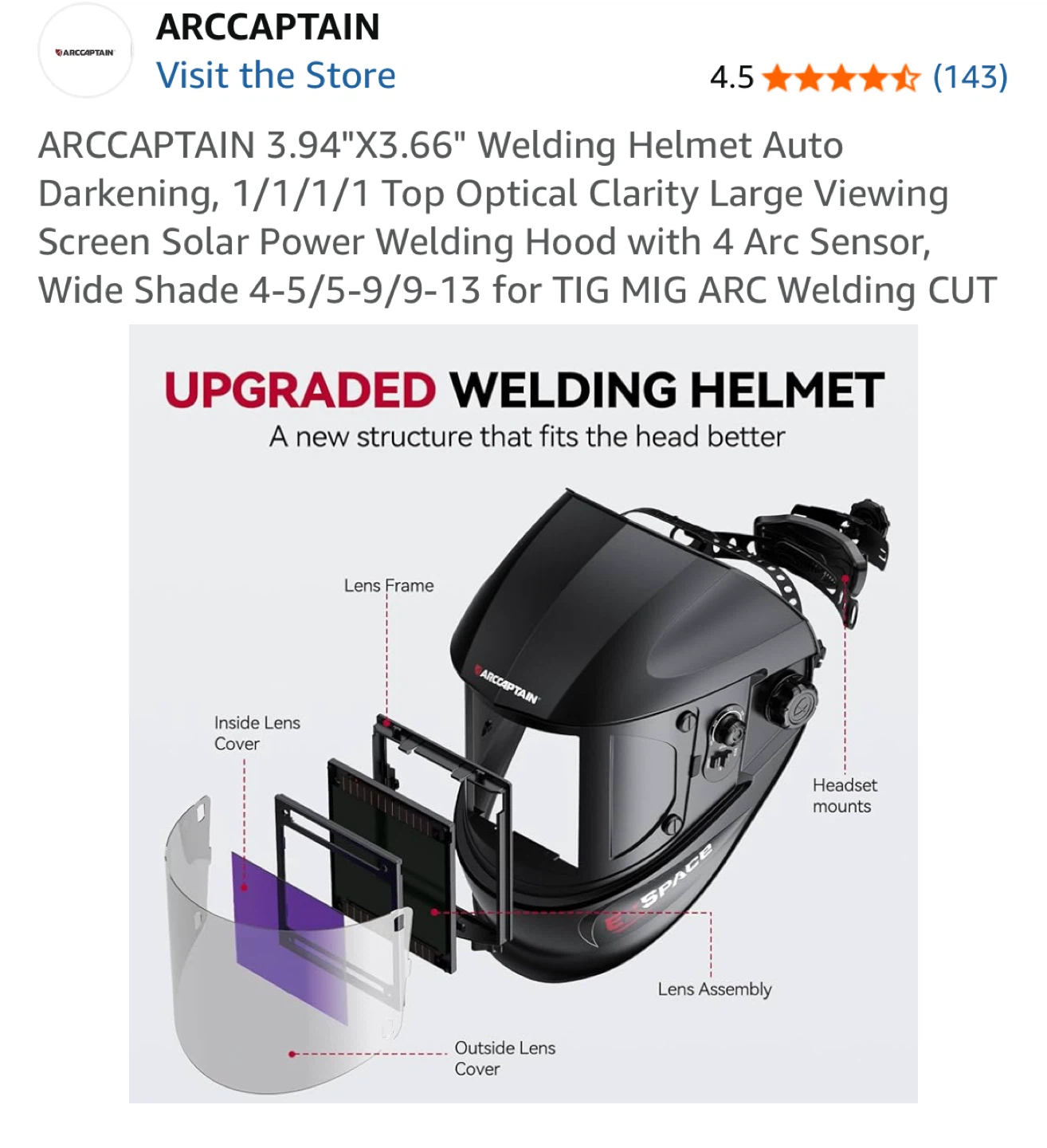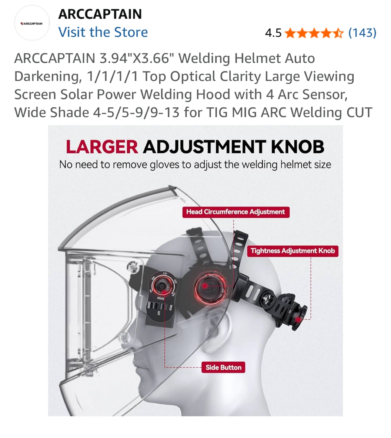 ARCCAPTAIN Auto Darkening Welding Helmet