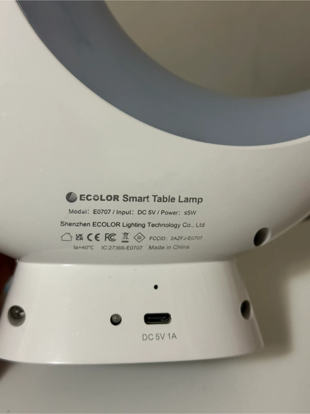 Selling an ECOLO Smart Table Lamp, model E0707. It's in great condition and perfect for adding a soft glow to any room. It comes with a USB cable for power. The lamp has a dimmer and colour control.
