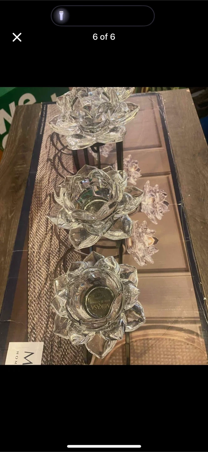 Selling a Mikasa Home Accents clear lotus candle centerpiece! It's in great condition and comes with the box