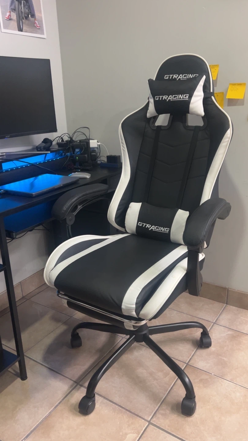 Selling a GT RACING gaming chair in black and white. It's in good condition and ready for a new setup! Perfect for long gaming sessions or working from home.bought on October 20th 2025. 2 month. 1Year Warranty still …