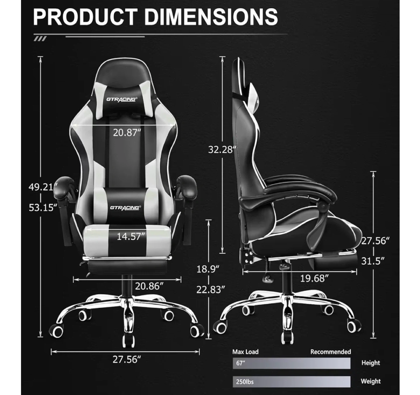 GTRACING Gaming Chair - Black & White