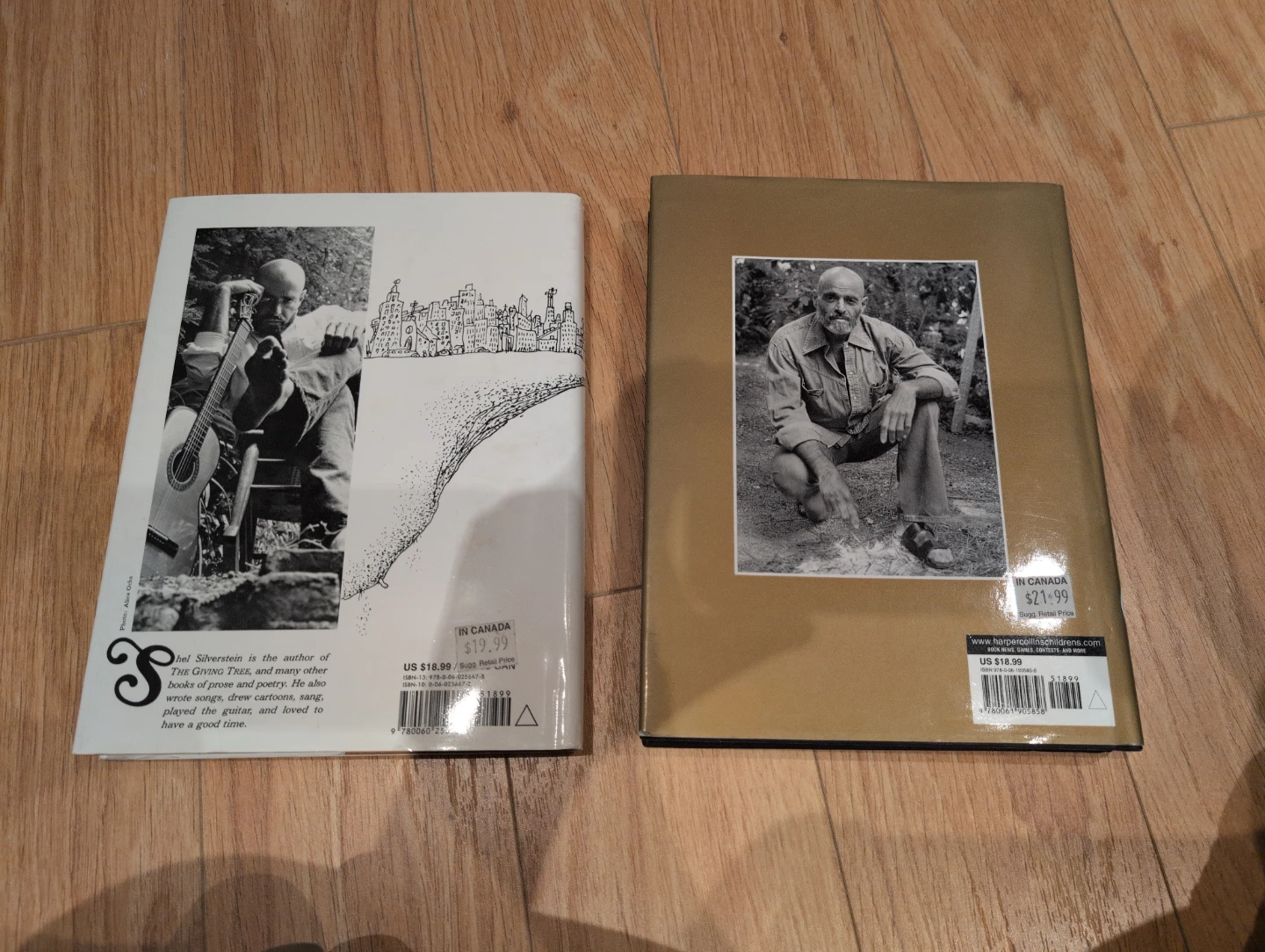 Both are collections of poems and drawings by Shel Silverstein. "Where the Sidewalk Ends" originally retailed for $19.99 USD, and "A Light in the Attic" for $21.99 CAD.