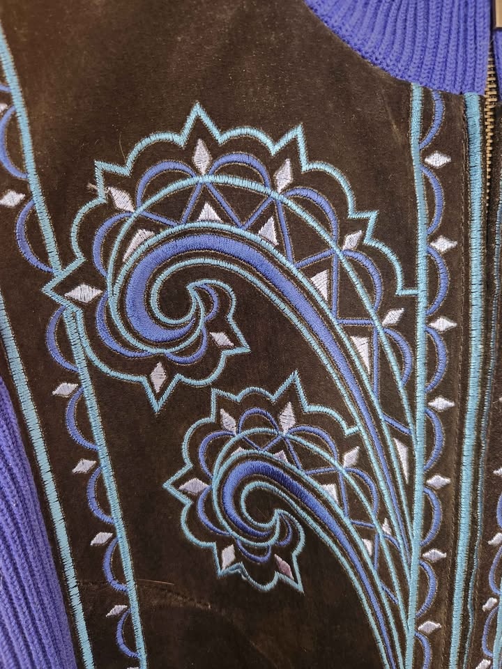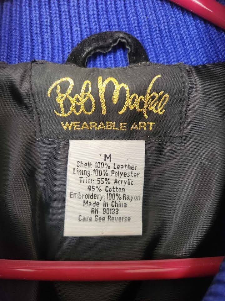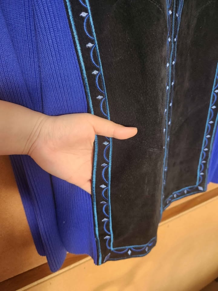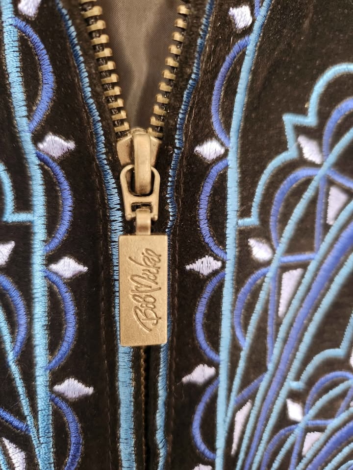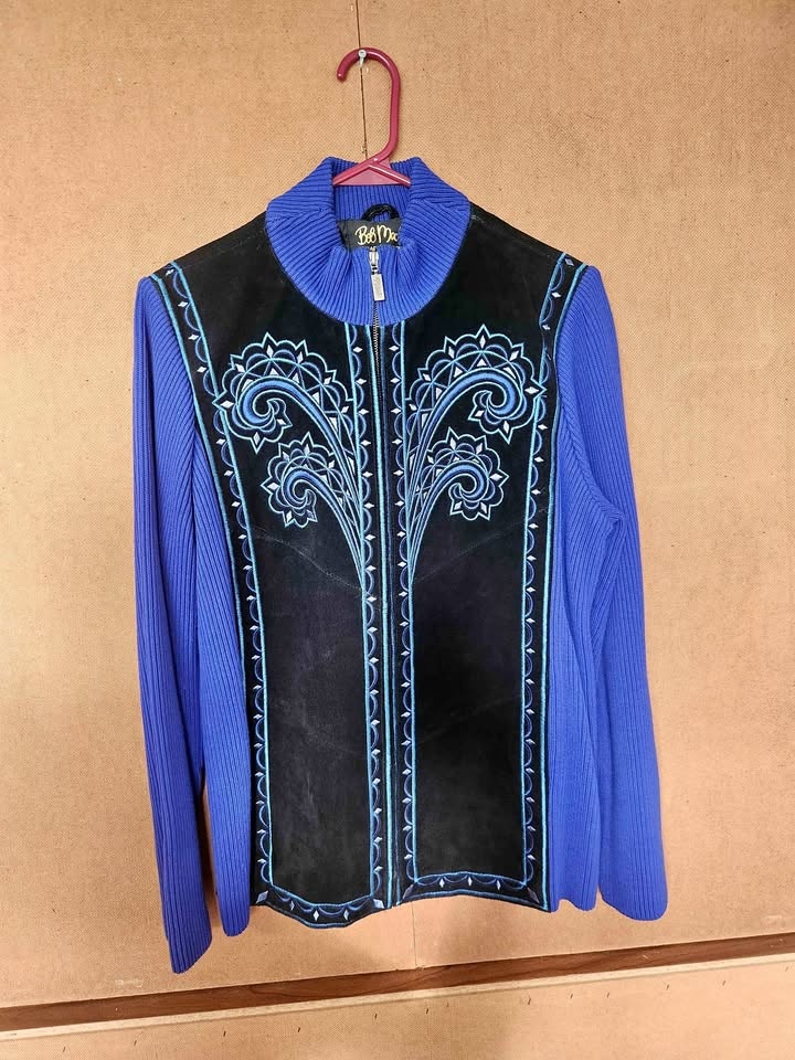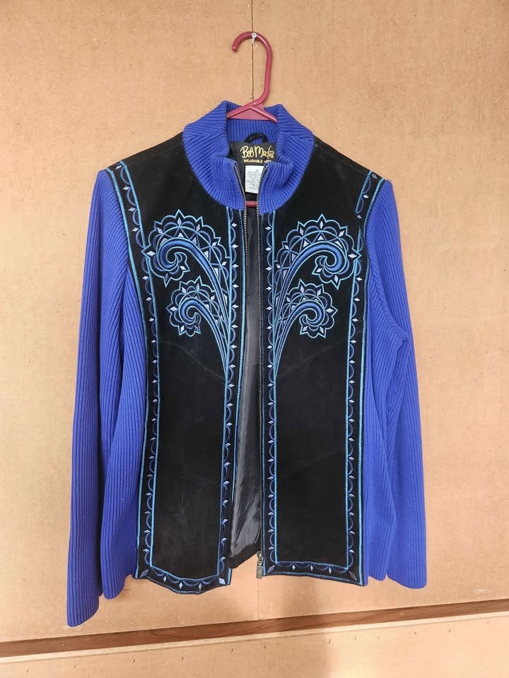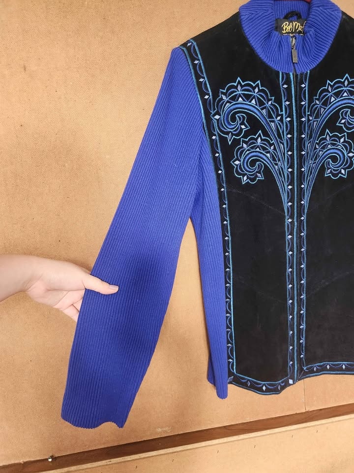 Bob Mackie Women's Jacket Leather Knit Blue Black Pattern