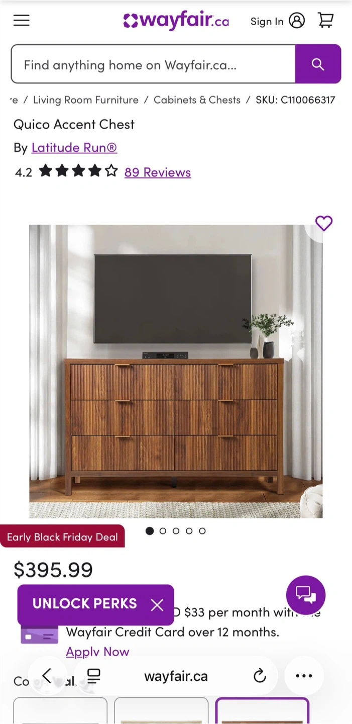Purchased from Wayfair (retails around $395 + tax). Selling because I changed my furniture plan.