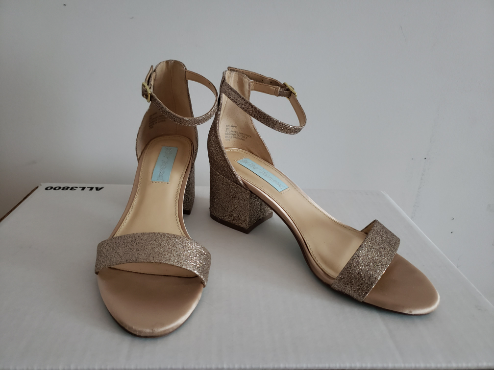 Like new. Worn briefly for my daytime wedding. Very comfy 2.25" block heel. Purchased from the USA. Champagne colour.