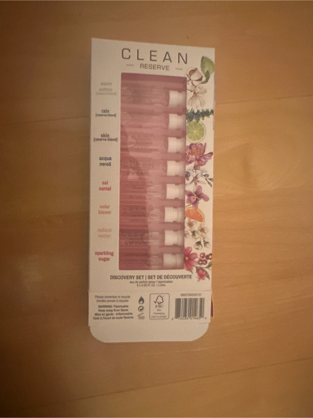 Selling a CLEAN RESERVE Discovery Set! It includes a variety of scents, perfect for finding your new favourite fragrance. The set includes warm cotton, rain, skin, acqua neroli, sel santal, solar bloom, radiant nectar, and sparkling sugar