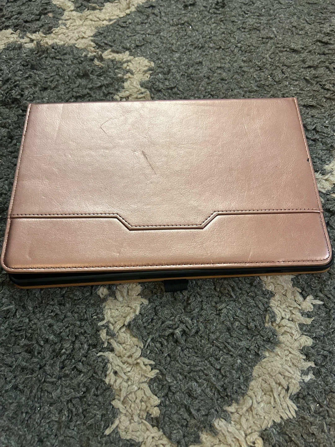 Selling a rose gold tablet case! It's in great condition and ready for a new tablet. The case is a lovely rose gold colour and has a tan interior.