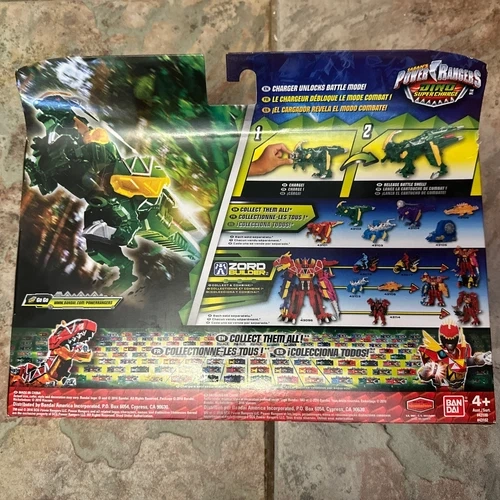 Power Rangers Dino Super Charge Para Zord Action Figure #43102 is a rare find for fans of the franchise. Brand new in box, never opened. Still sealed. Box may have minimal signs of wear from handling and storage (see photos). Made by Bandai, this action figure of Para Zord comes in green color and is modeled after the character's appearance in the show. The figure is brand new and includes a charger for added convenience. With its intricate details and high-quality construction, this action figure is perfect for collectors and enthusiasts alike. Add this rare item to your collection today! Feel free to message if you have any questions!