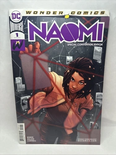 Very good condition. There is a feint crease on the front cover and some dimpling from handling and storage (see photos). This is a special convention edition variant of DC Comics' "Naomi" #1, featuring the first appearance of the character Naomi. The comic is written by Brian Michael Bendis and David F. Walker, with art by Jamal Campbell. It is part of the DC Universe and was published in 2019 as a single issue in English. This variant is a unique addition to any collection of modern age superhero comics. Feel free to message if you have any questions!