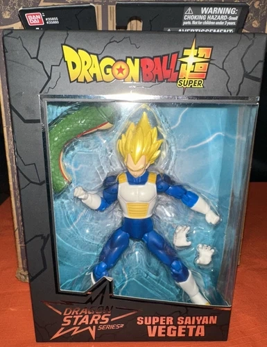 Unleash the power of your Dragon Ball collection with the Super Saiyan Vegeta action figure from the Dragon Stars Series 2. Crafted with precision by Bandai, this Vegeta figure captures the essence of the iconic Saiyan warrior from the beloved 'Dragon Ball Super' franchise. Made from durable plastic, it's designed for both play and display, allowing fans to recreate epic battles or showcase their favorite character.
